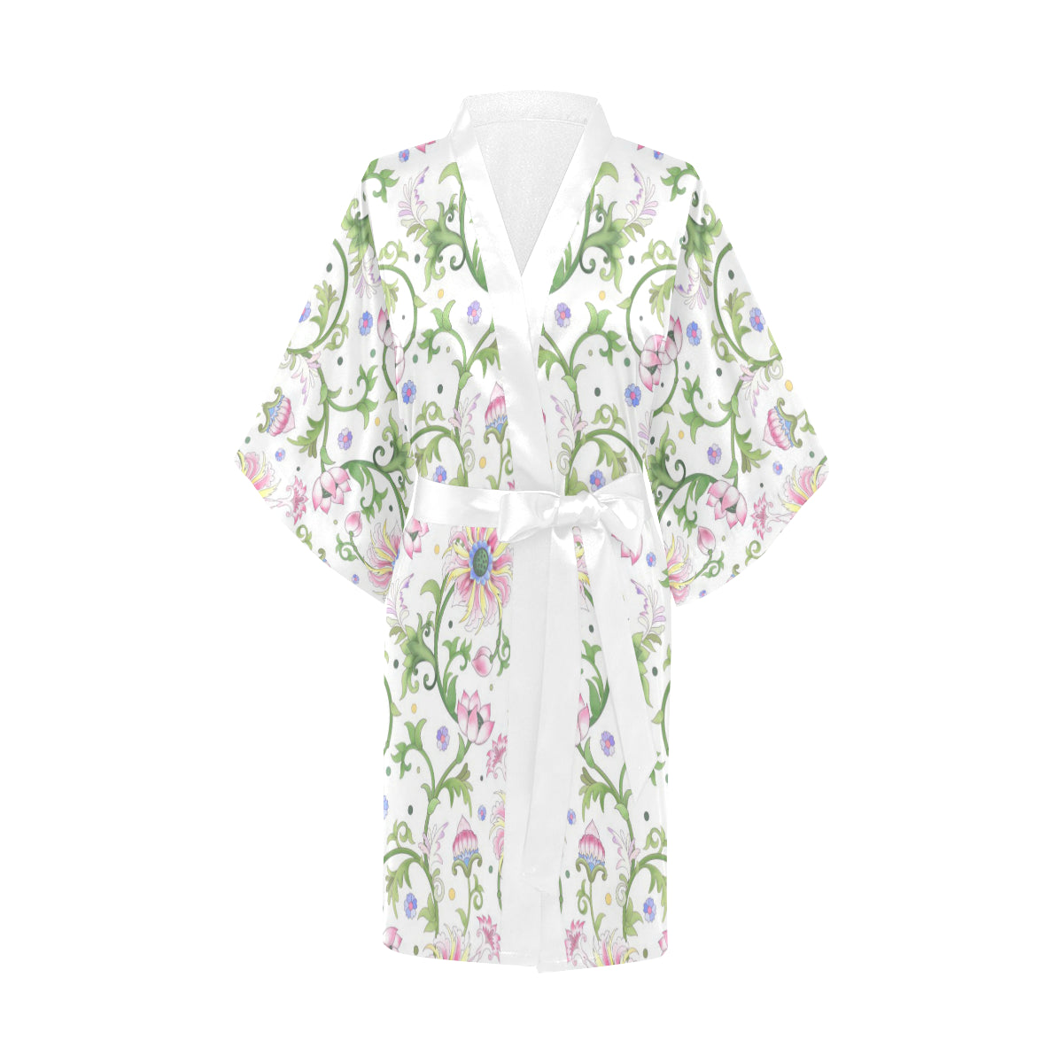 Beautiful pink lotus waterlily leaves pattern Women's Short Kimono Robe is a uniqued design and limited item. It made to order, hand printed, and sewn with love in our factory.