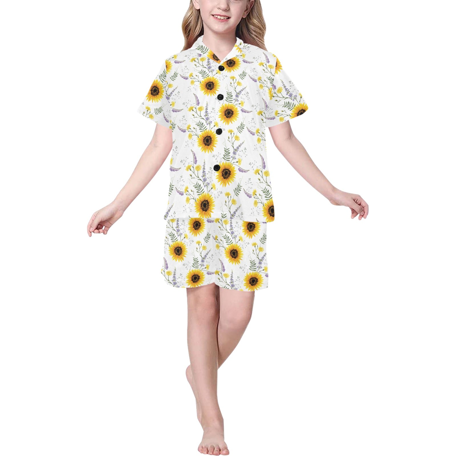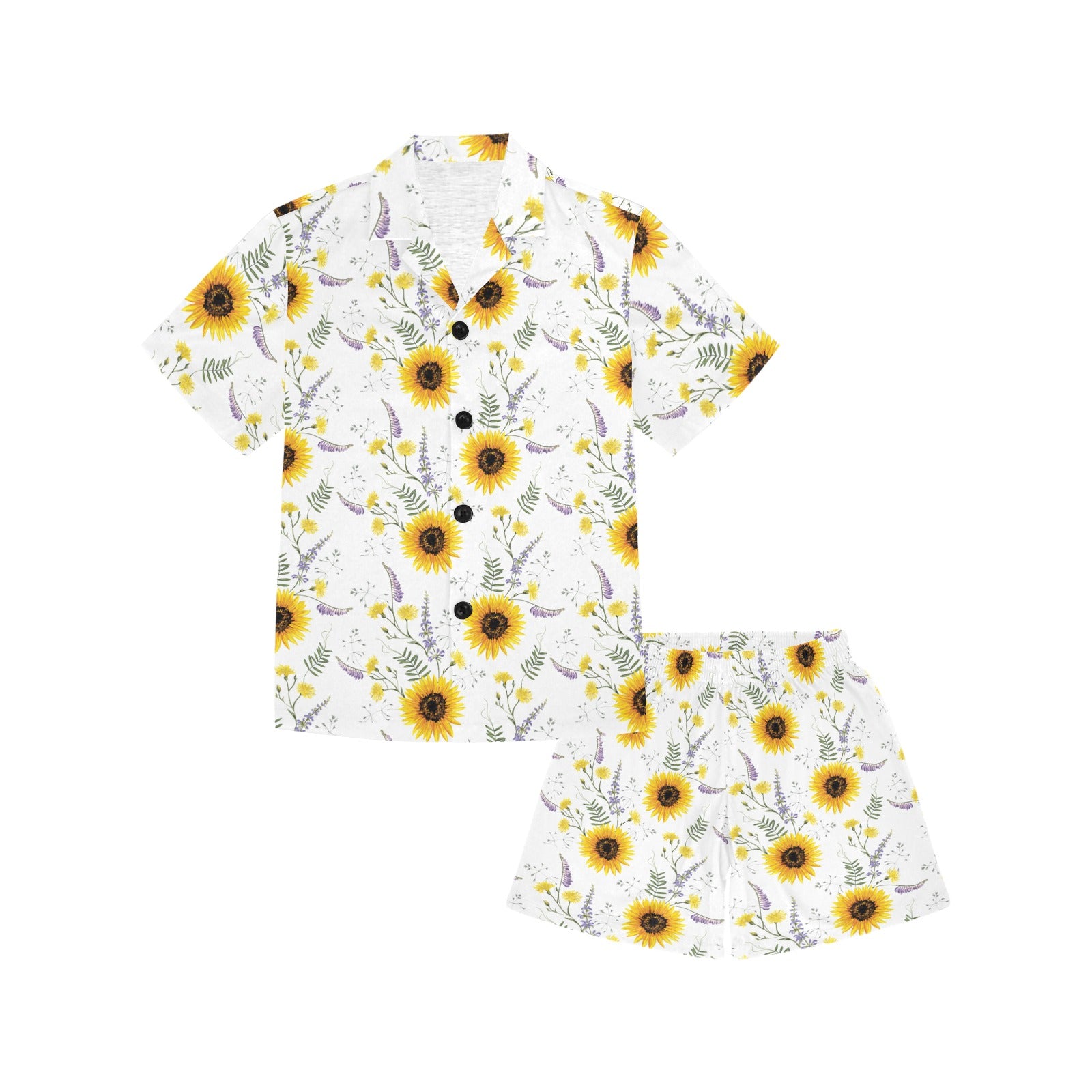 beautiful sunflowers pattern Kids' Boys' Girls' V-Neck Short Pajama Set