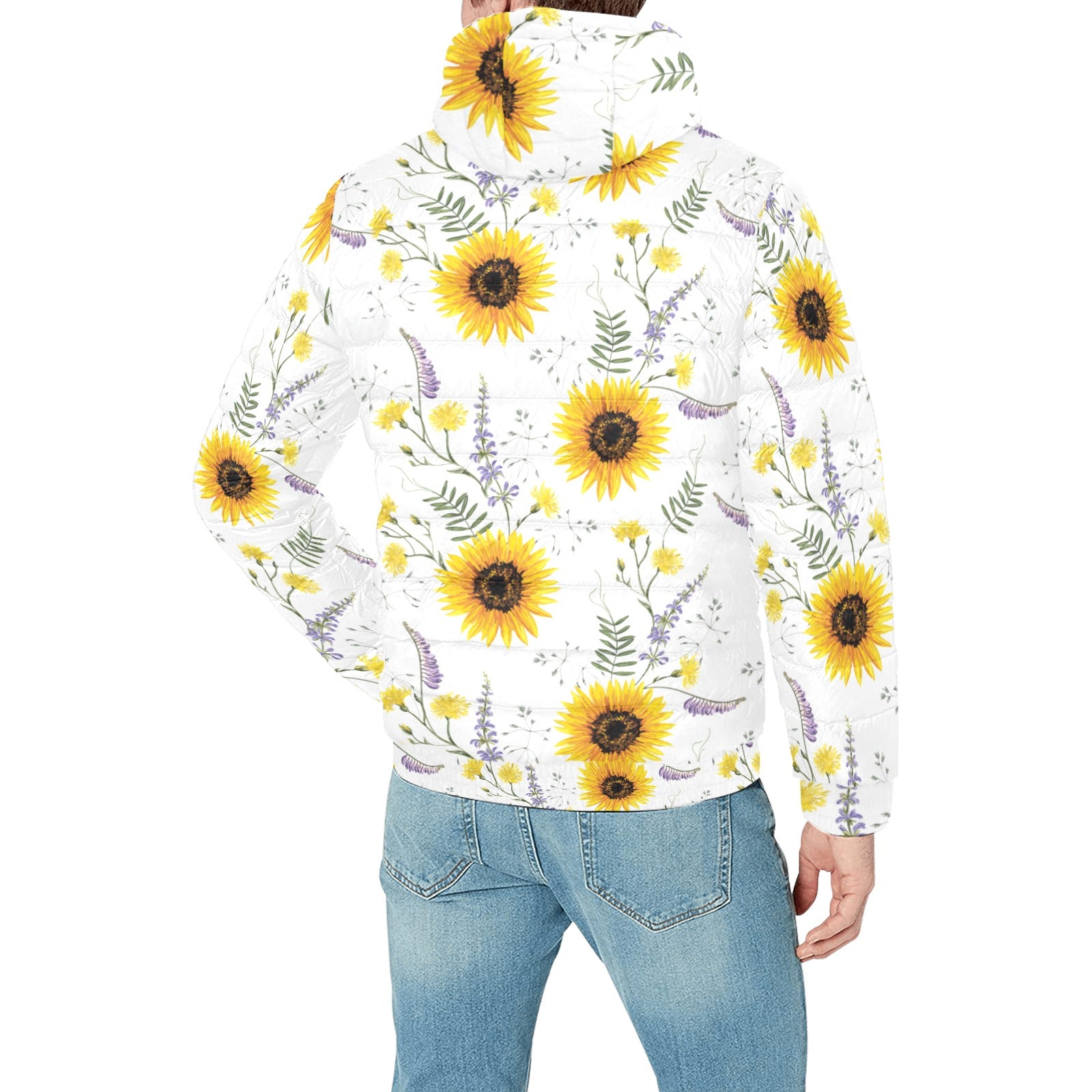 beautiful sunflowers pattern Men's Padded Hooded Jacket