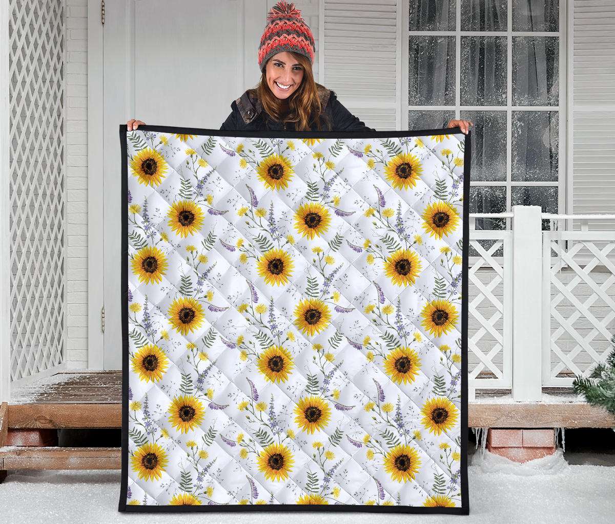 Beautiful Sunflowers Pattern Premium Quilt is a uniqued design and limited item. It made to order, hand printed, and sewn with love in our factory.
