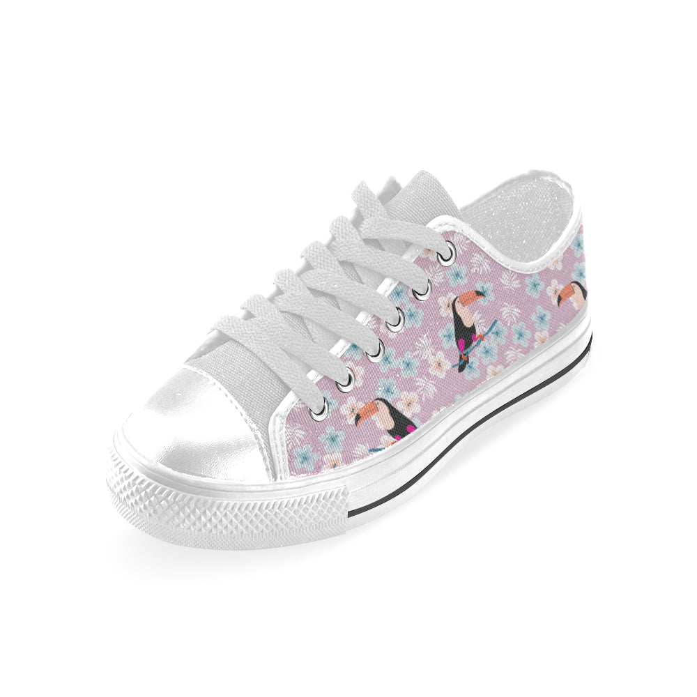 Beautiful toucan flower leaves Men's Low Top Shoes White