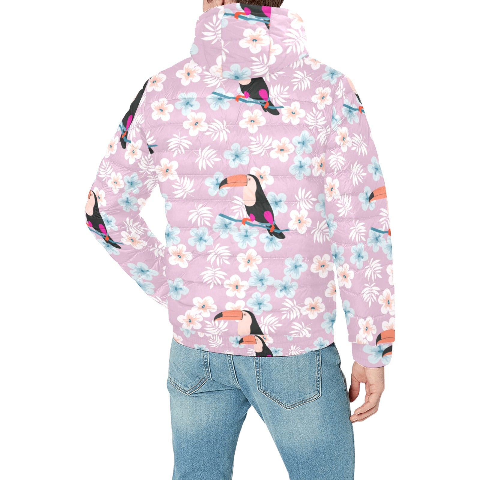 Beautiful toucan flower leaves Men's Padded Hooded Jacket