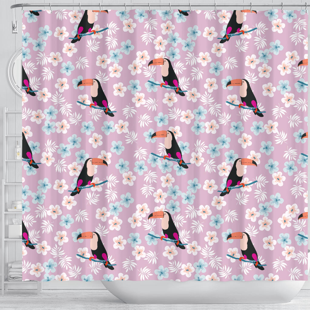 Beautiful Toucan Flower Leaves Shower Curtain Fulfilled In US