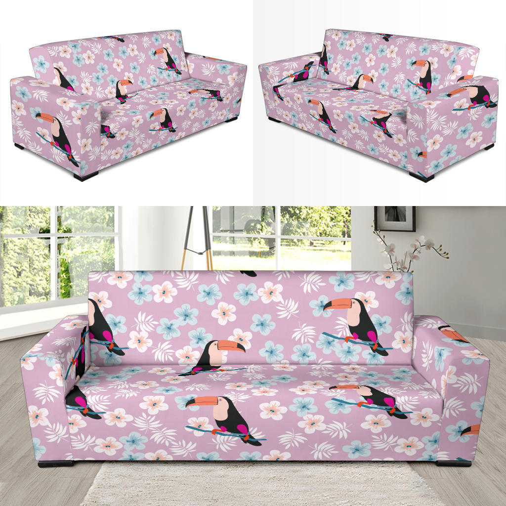 Beautiful Toucan Flower Leaves Sofa Slipcover