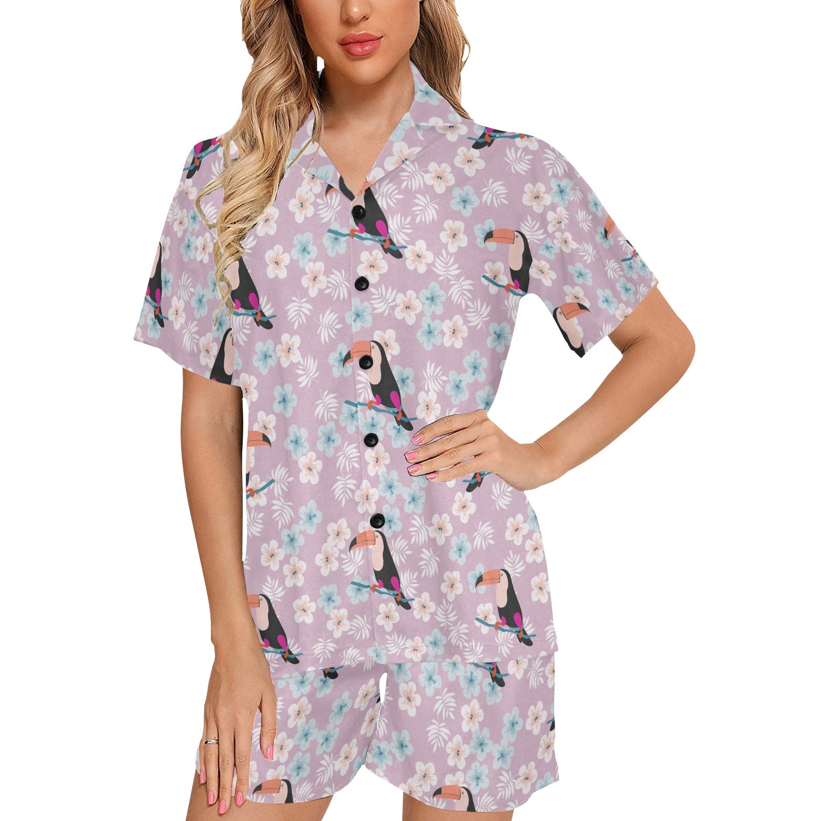 Beautiful toucan flower leaves Women's V-Neck Short Pajama Set