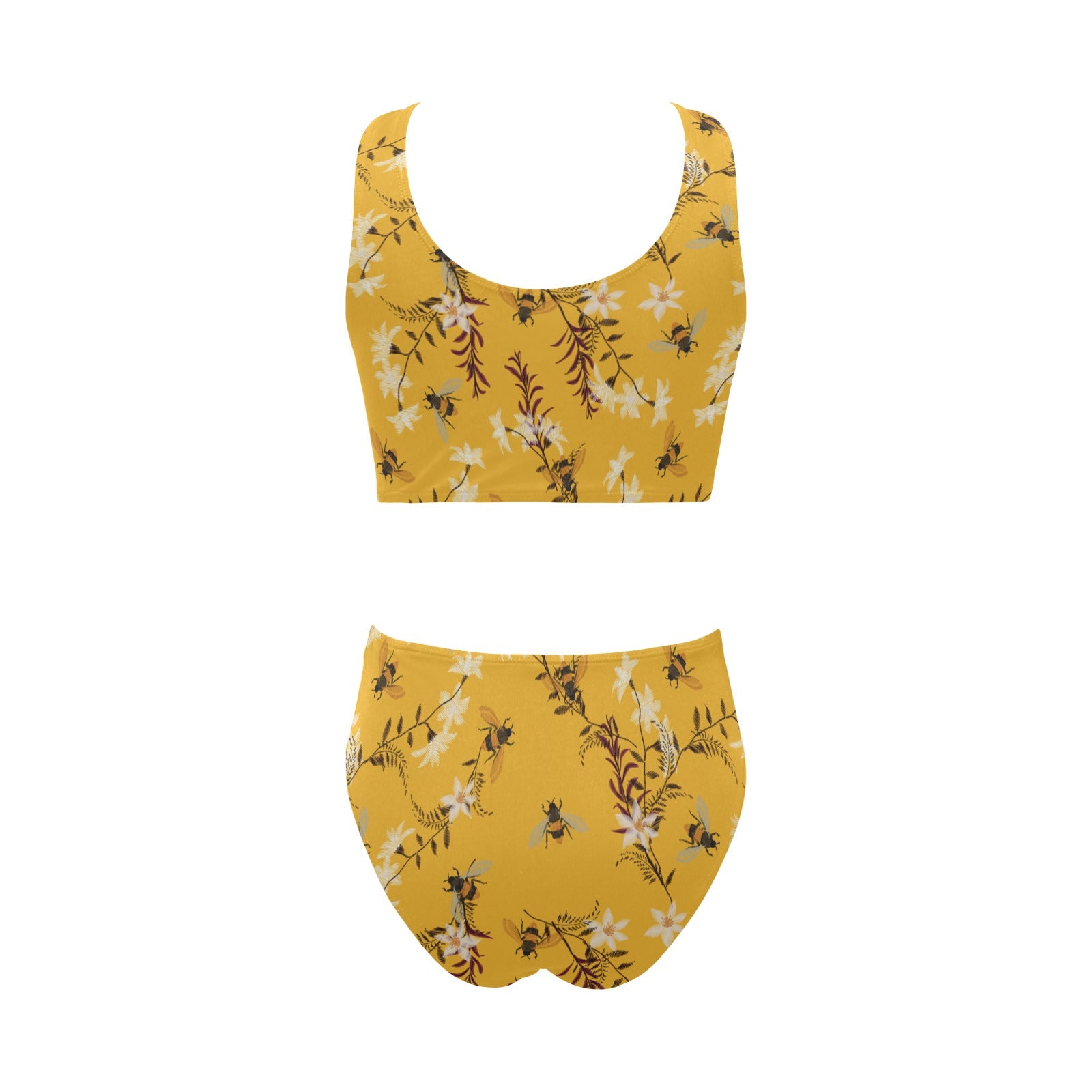 Bee flower pattern Chest Bowknot High Waisted Bikini Swimsuit