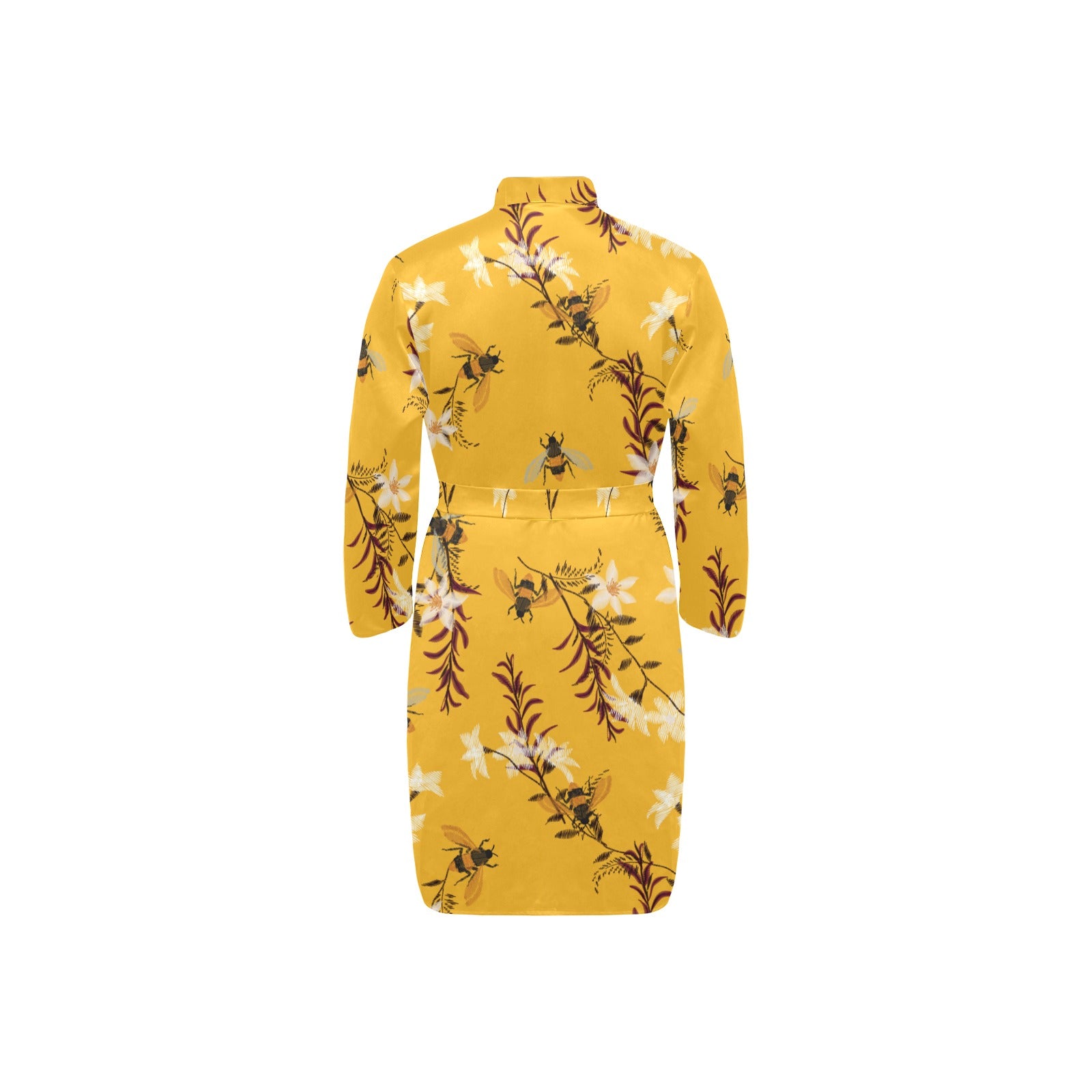 Bee flower pattern Men's Long Sleeve Belted Night Robe