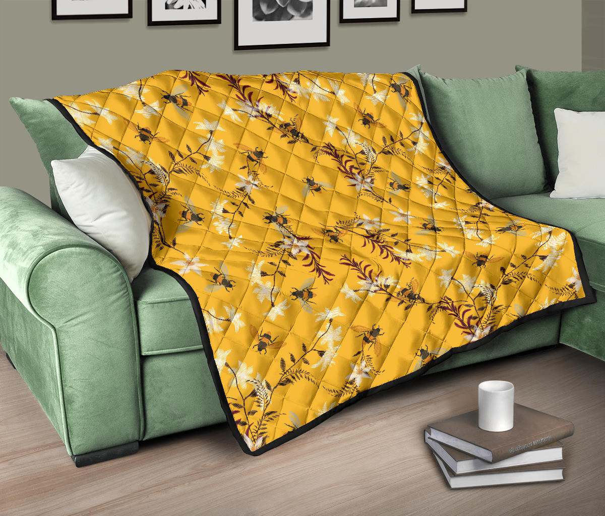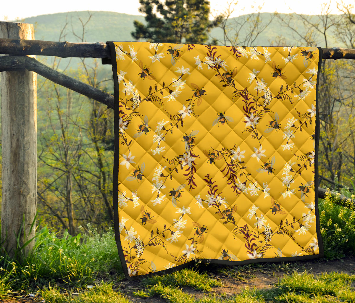 Bee Flower Pattern Premium Quilt is a uniqued design and limited item. It made to order, hand printed, and sewn with love in our factory.