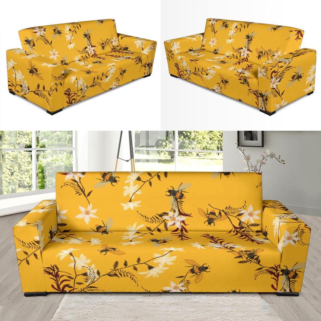 Bee flower pattern Sofa Slipcover is a uniqued design and limited item. It made to order, hand printed, and sewn with love in our factory.