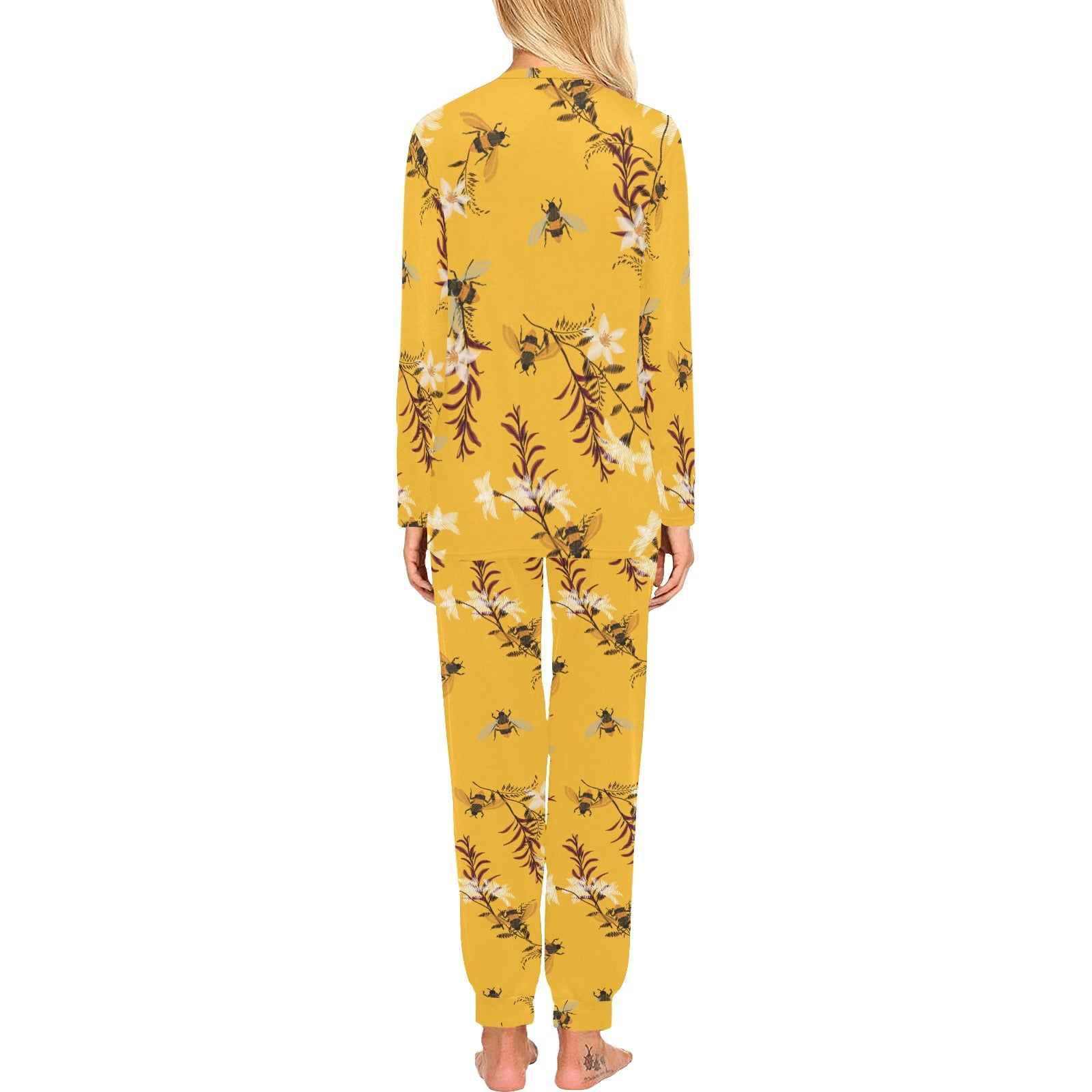Bee flower pattern Women's All Over Print Pajama Set
