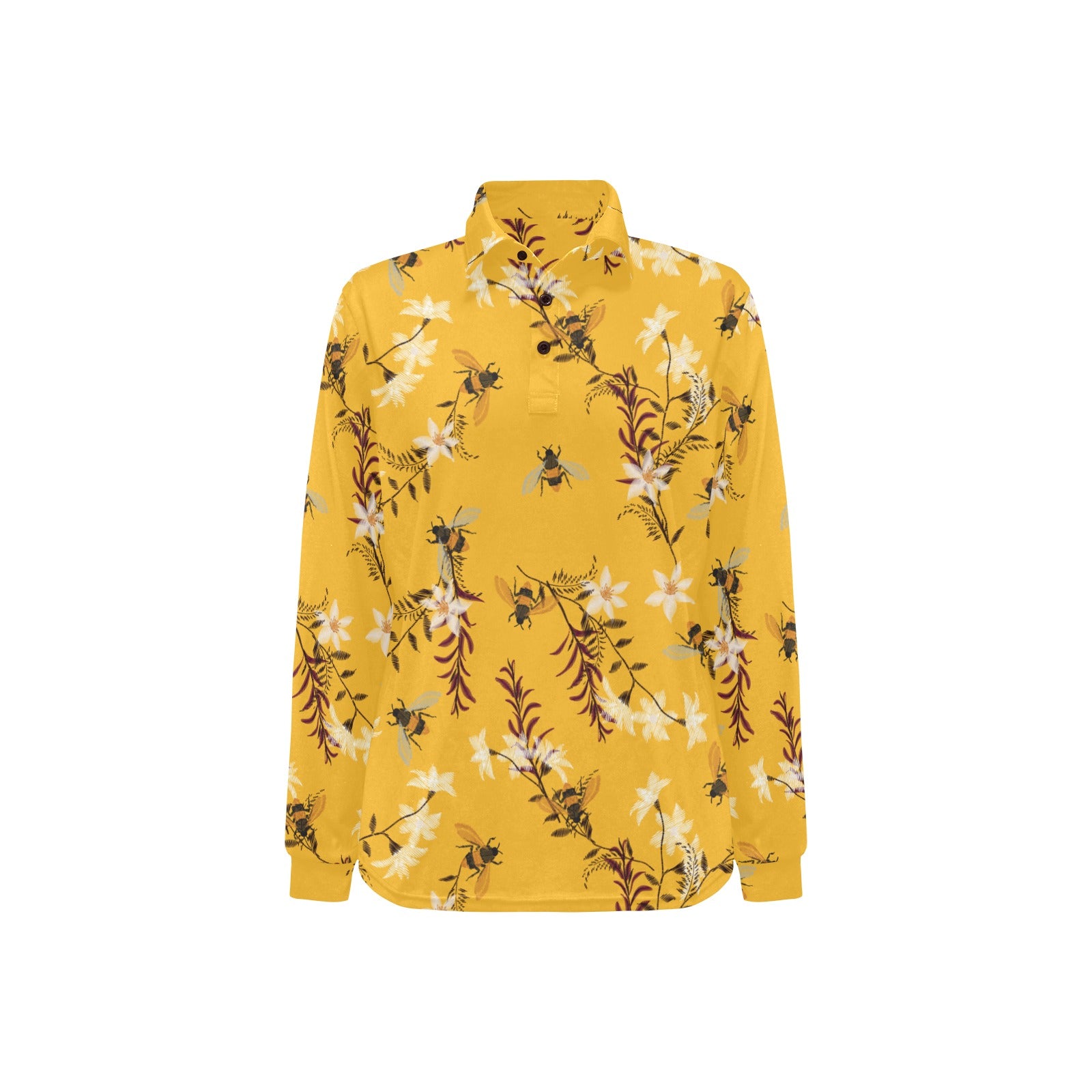 Bee flower pattern Women's Long Sleeve Polo Shirt
