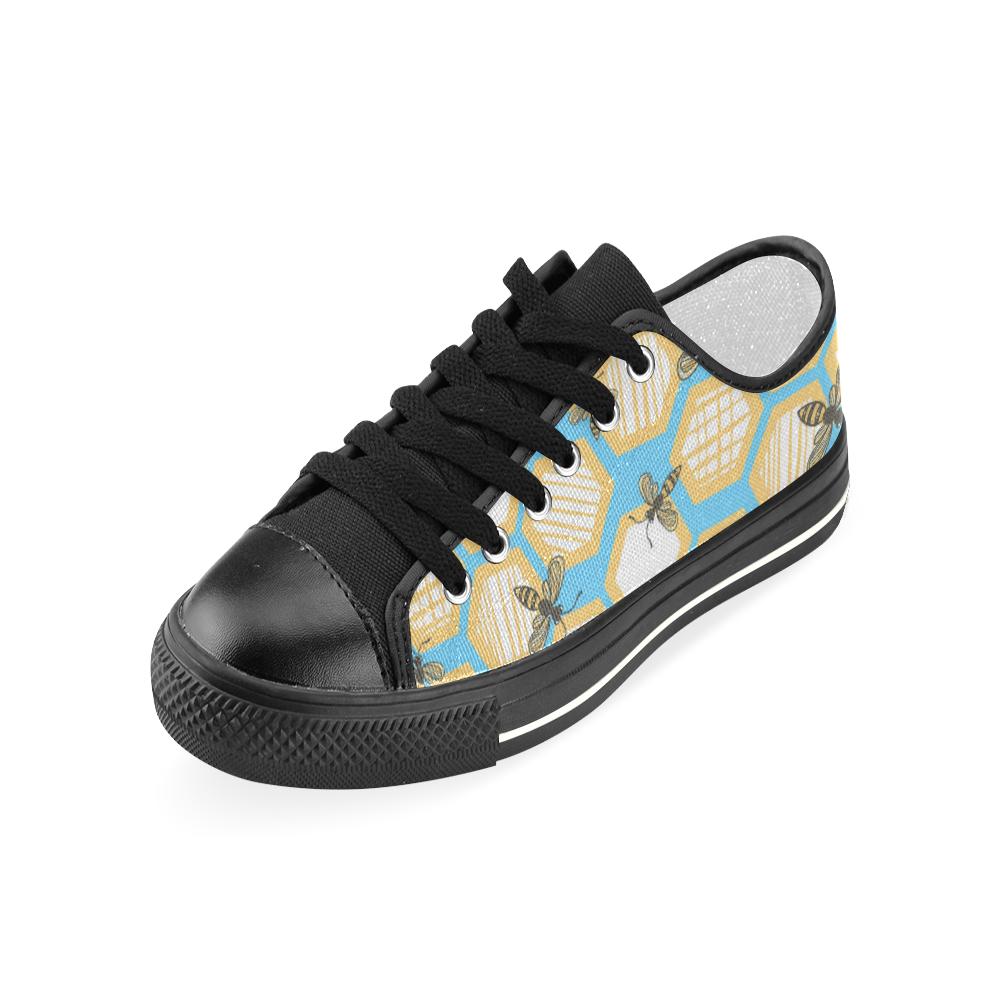 Bee honeycomb pattern Kids' Boys' Girls' Low Top Canvas Shoes Black