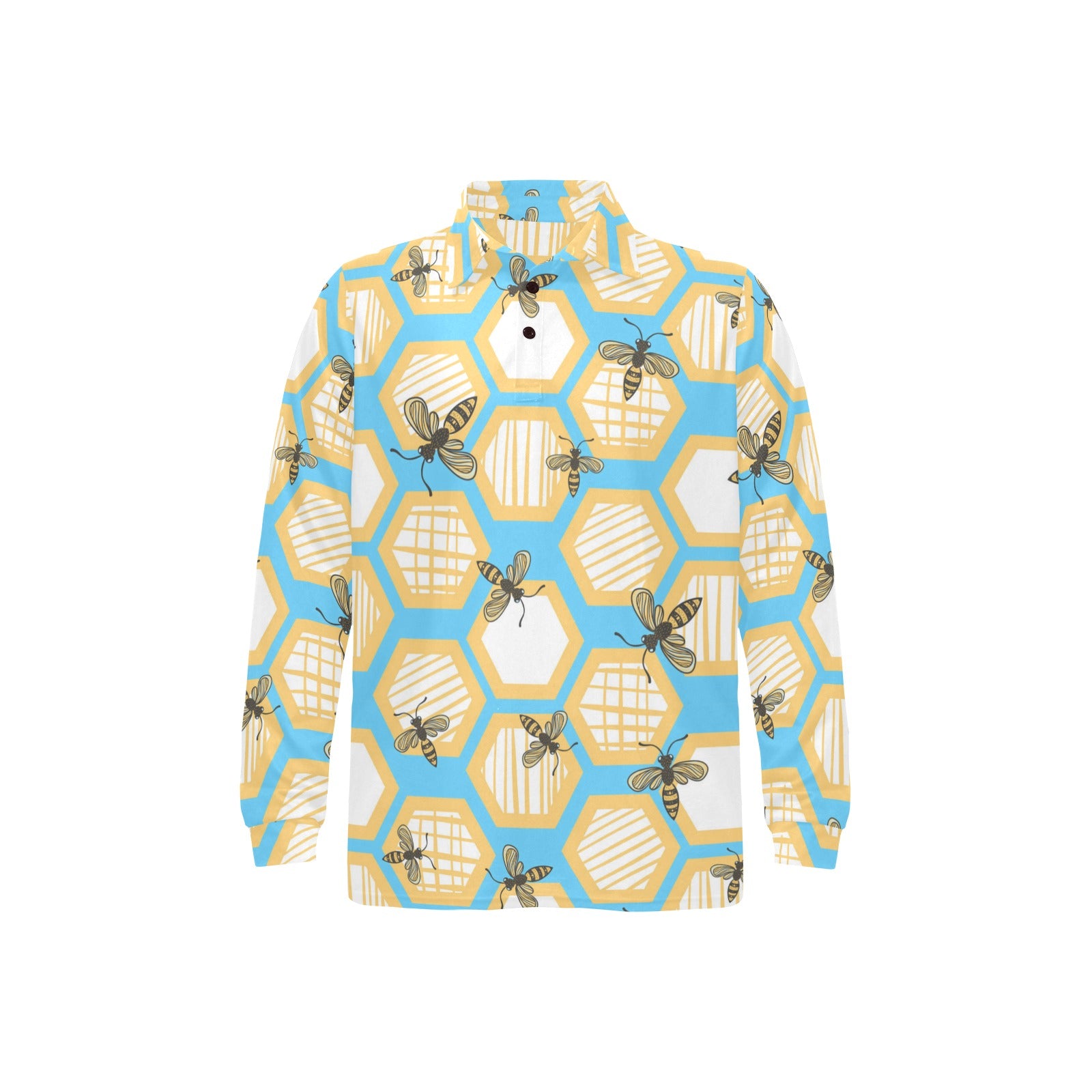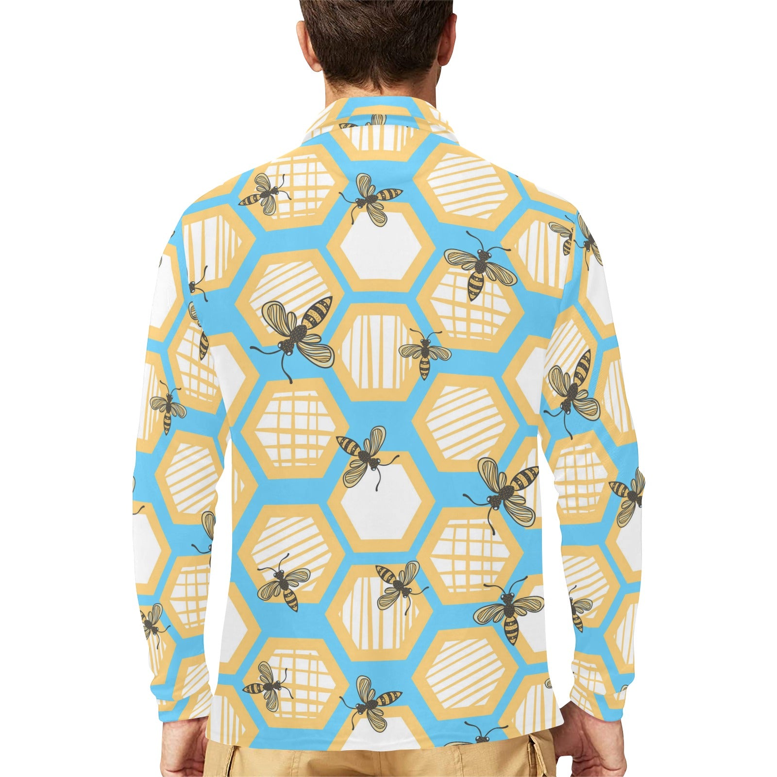 Bee honeycomb pattern Men's Long Sleeve Polo Shirt