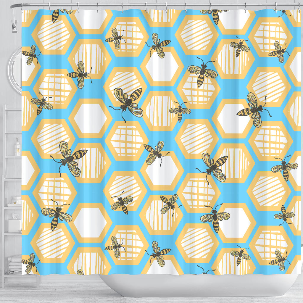 Bee Honeycomb Pattern Shower Curtain Fulfilled In US