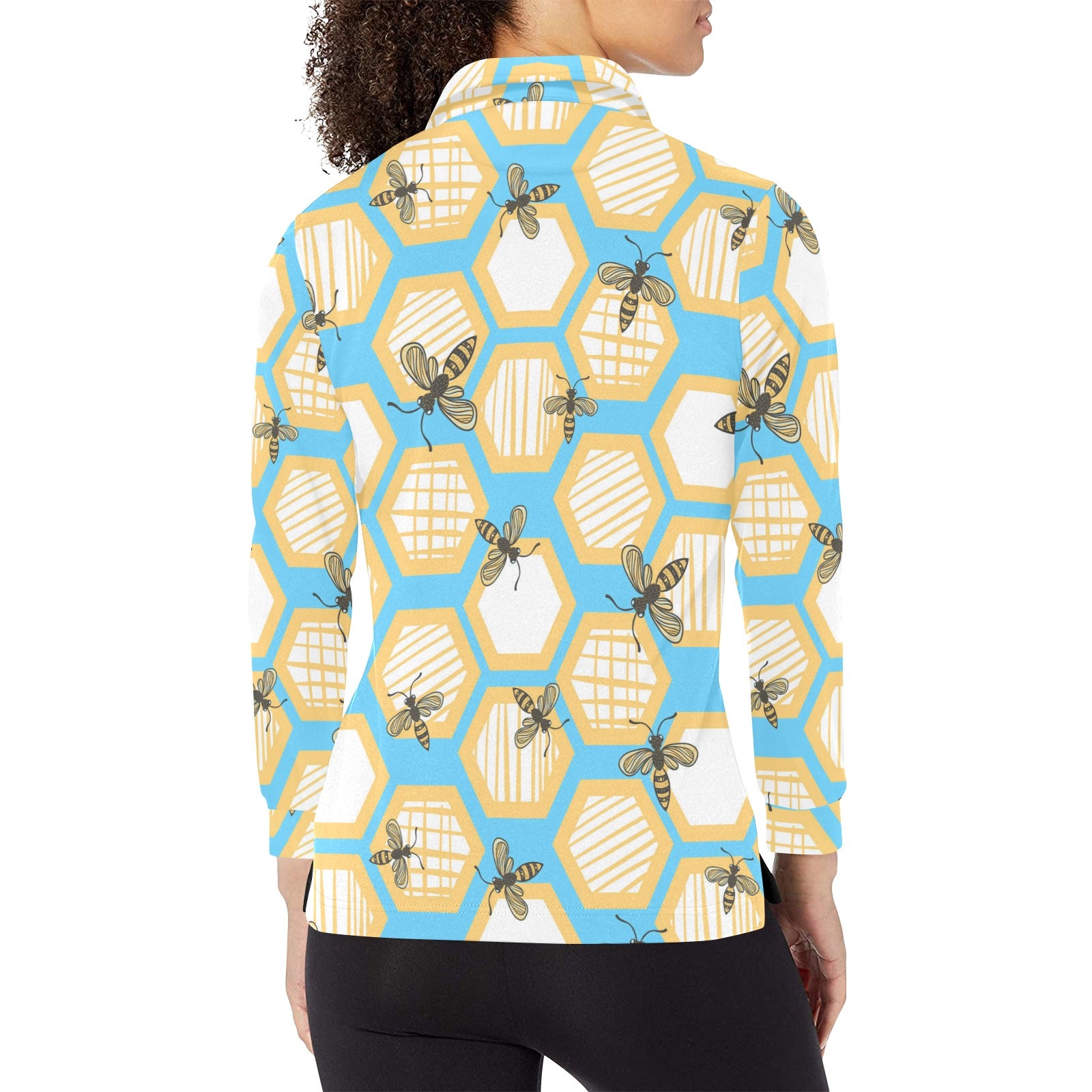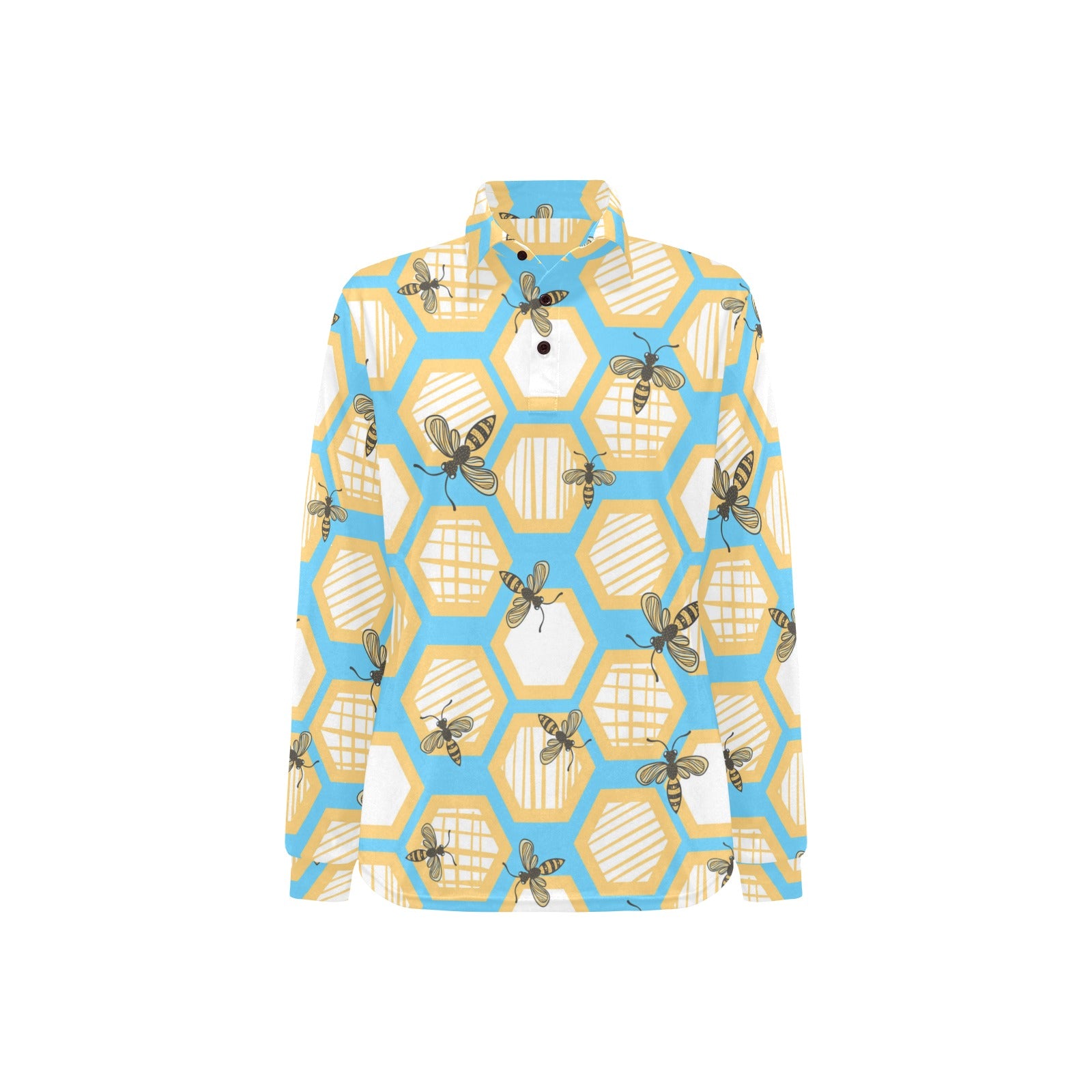 Bee honeycomb pattern Women's Long Sleeve Polo Shirt