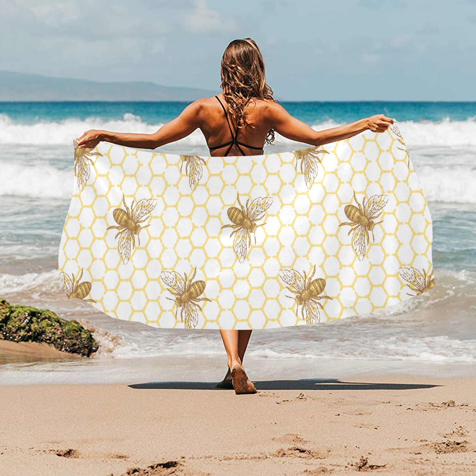 Bee honeycomb seamless design pattern Beach Towel