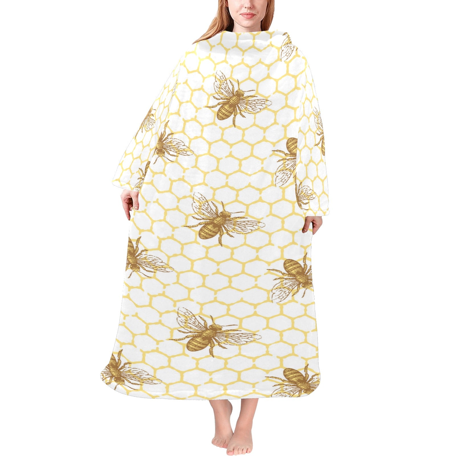 Bee honeycomb seamless design pattern Blanket Robe with Sleeves