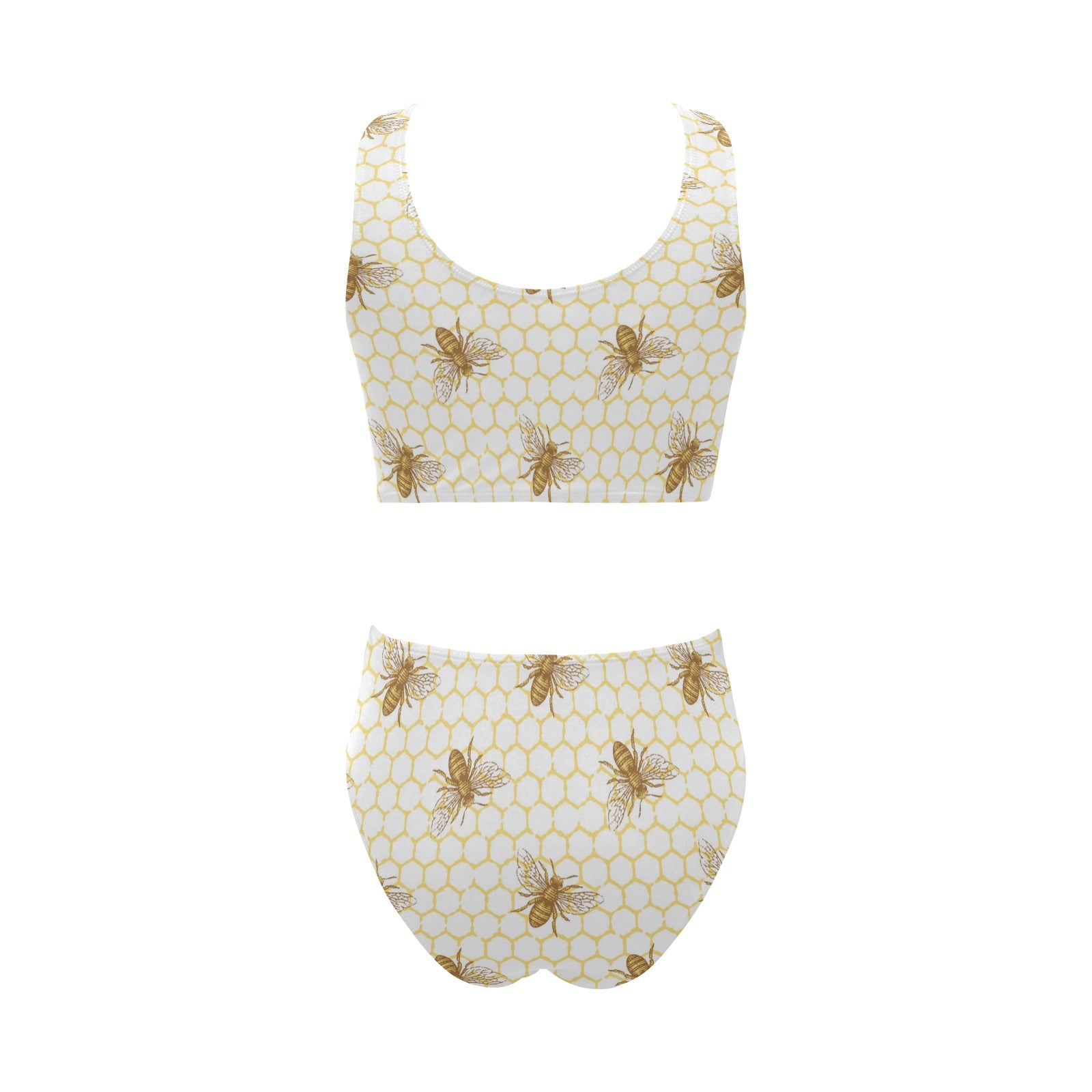Bee honeycomb seamless design pattern Chest Bowknot High Waisted Bikini Swimsuit
