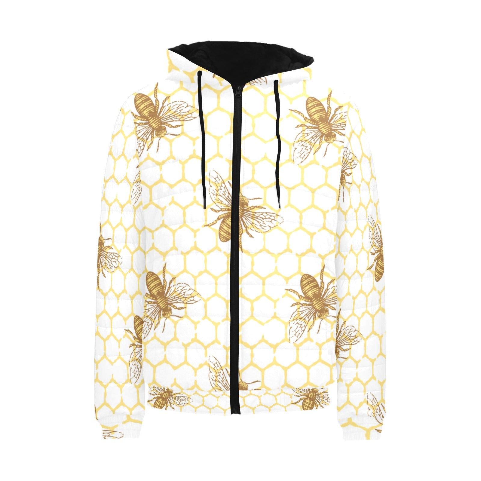 Bee honeycomb seamless design pattern Men's Padded Hooded Jacket