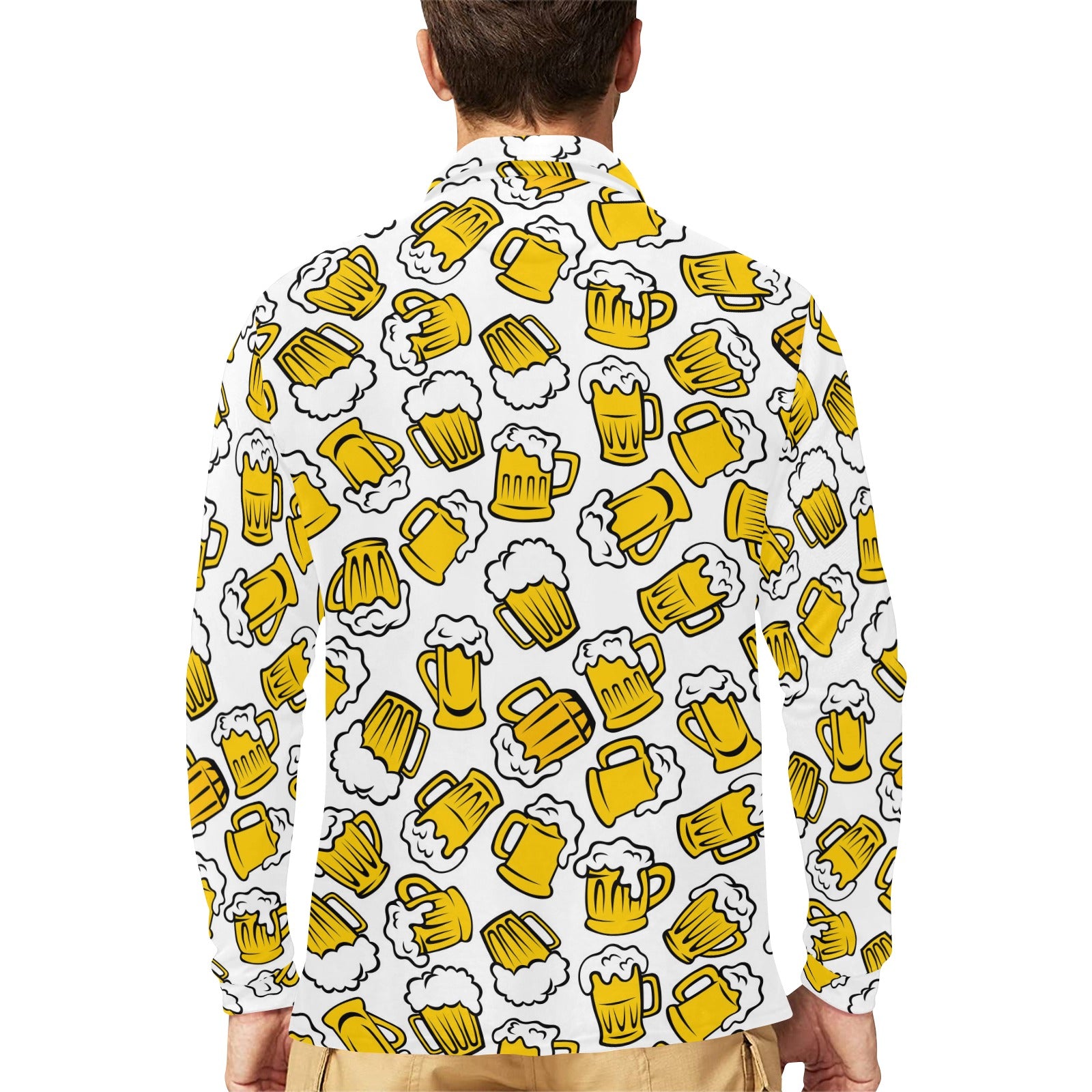 Beer design pattern Men's Long Sleeve Polo Shirt