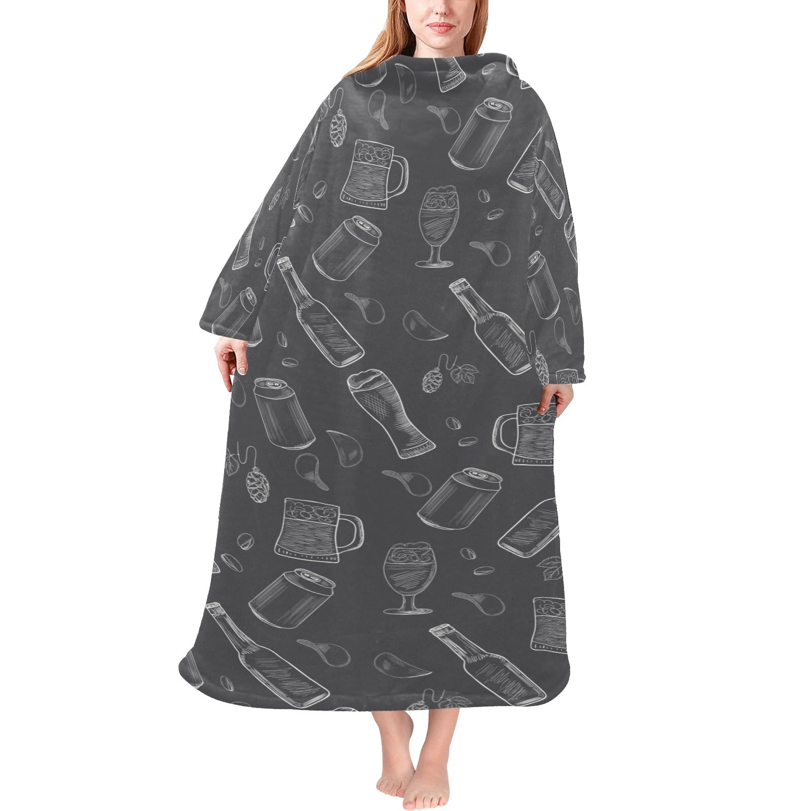 Beer hand drawn pattern Blanket Robe with Sleeves