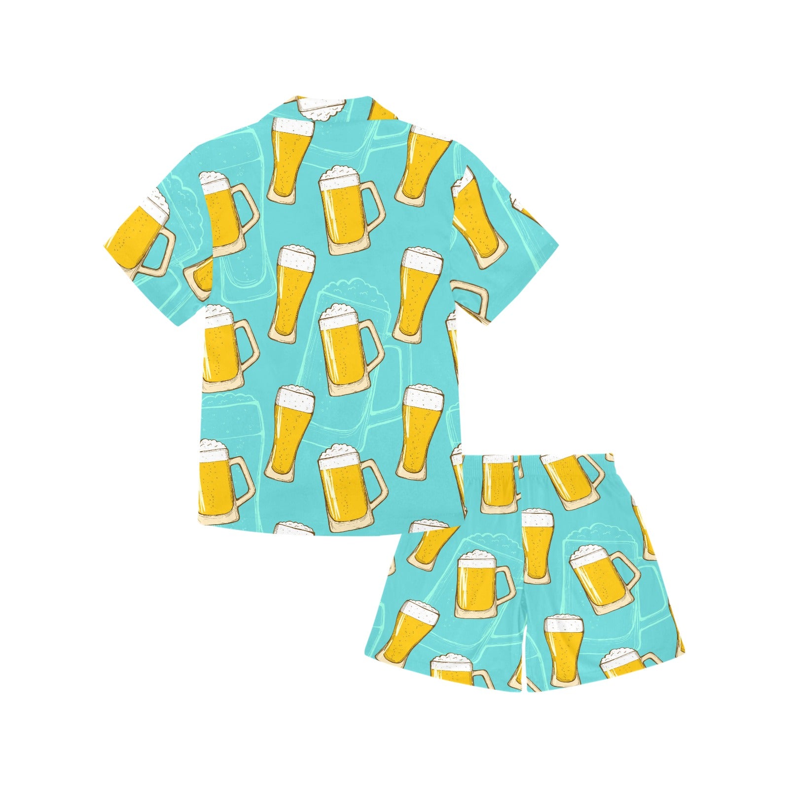 Beer pattern green background Kids' Boys' Girls' V-Neck Short Pajama Set