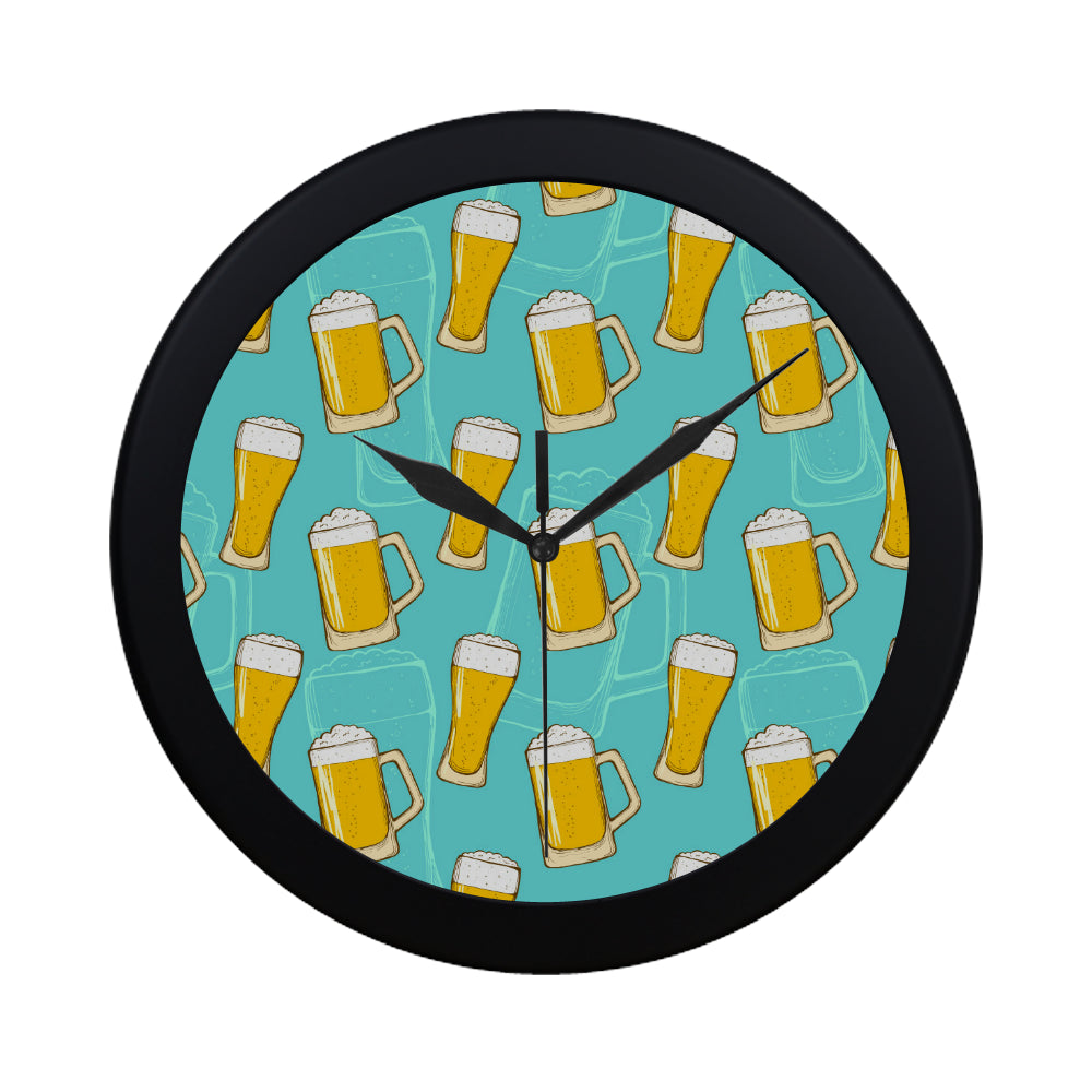 Beer pattern green background Boys Celebrating Elegant Black Wall Clock is a uniqued design and limited item. It made to order, hand printed, and sewn with love in our factory.