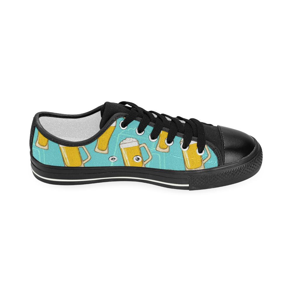 Beer pattern green background Kids' Boys' Girls' Low Top Canvas Shoes Black