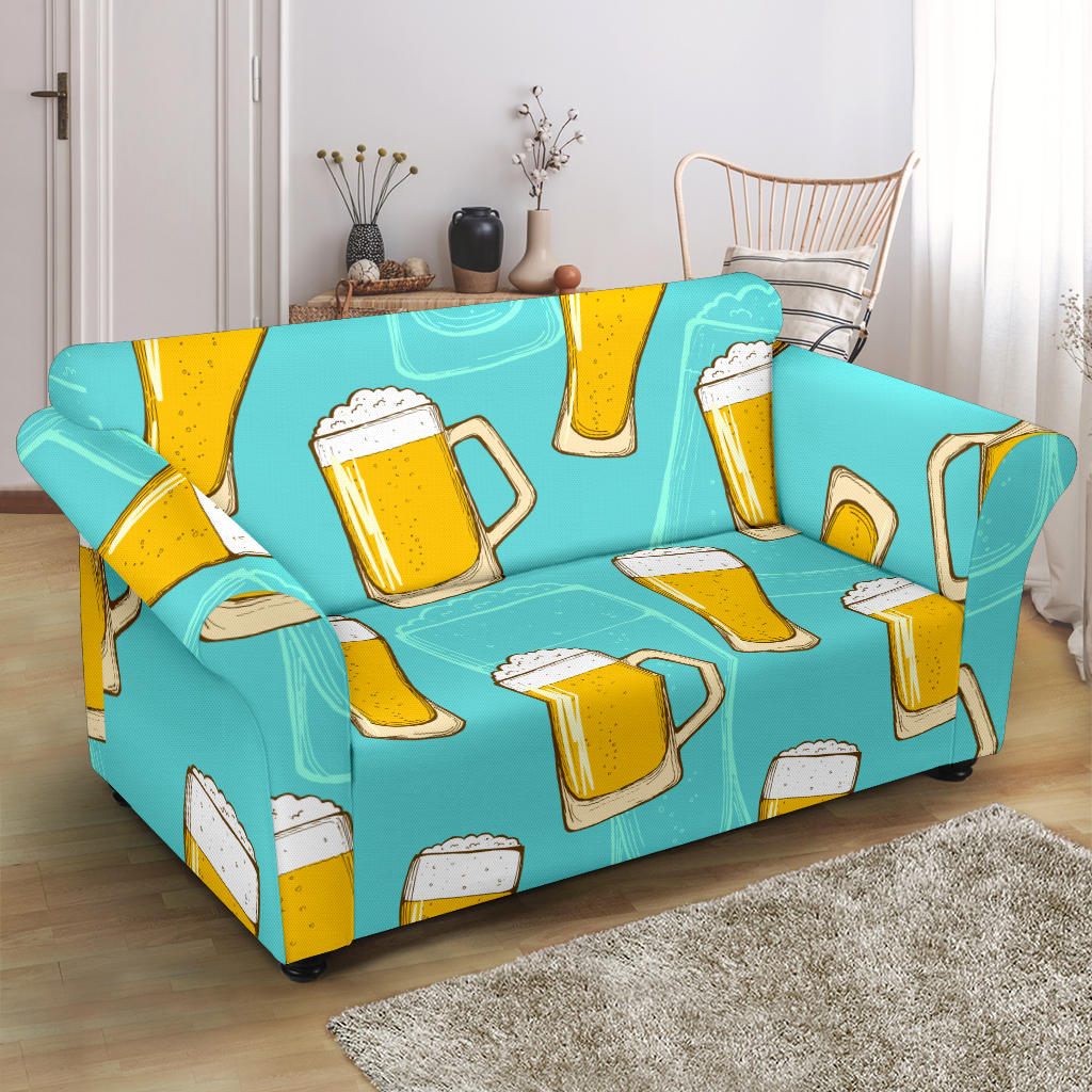 Beer Pattern Green Background Loveseat Couch Slipcover