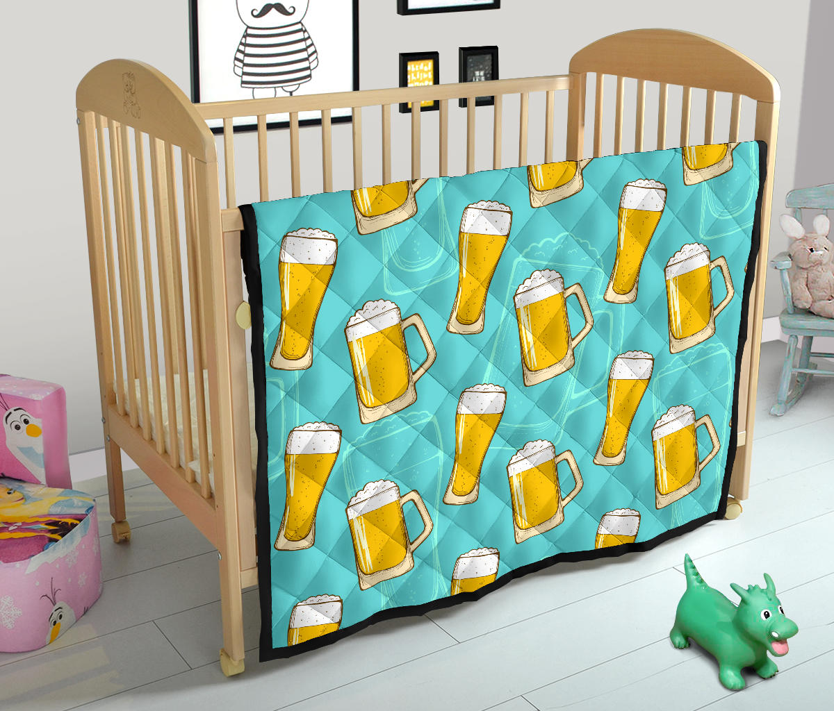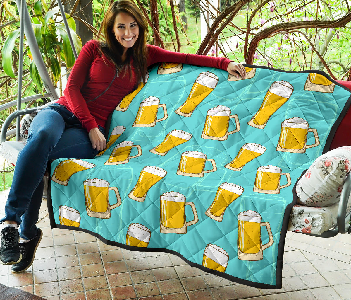 Beer Pattern Green Background Premium Quilt is a uniqued design and limited item. It made to order, hand printed, and sewn with love in our factory.