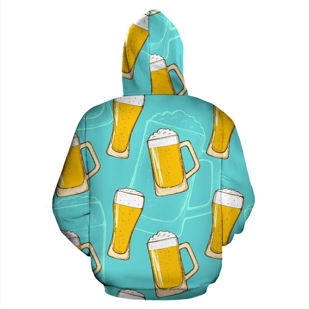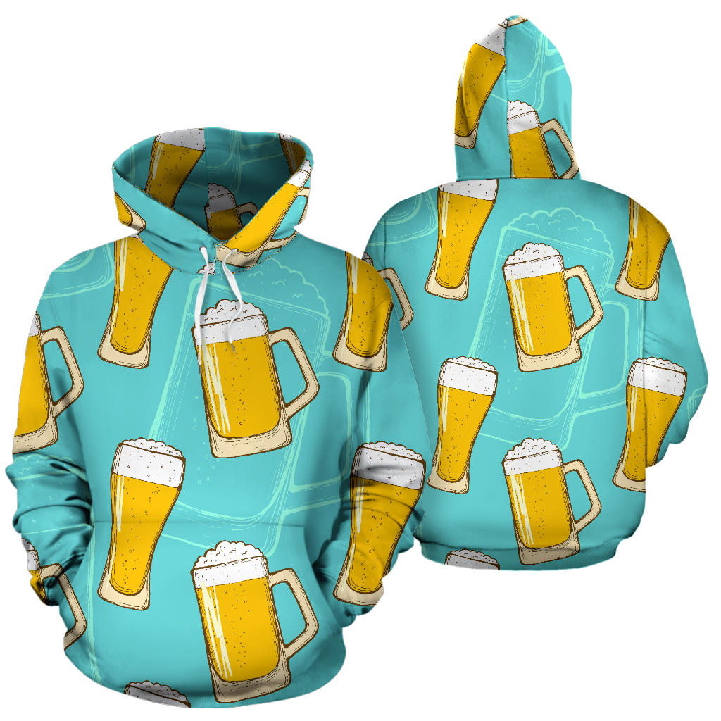 Beer Pattern Green Background Men Women Pullover Hoodie