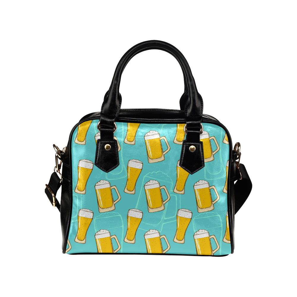 Beer pattern green background Shoulder Handbag is a uniqued design and limited item. It made to order, hand printed, and sewn with love in our factory.