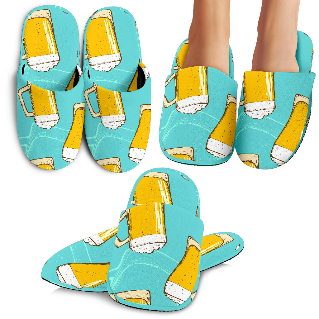 Beer pattern green background Slippers are uniqued design and limited item. It made to order, hand printed, and sewn with love in our factory.