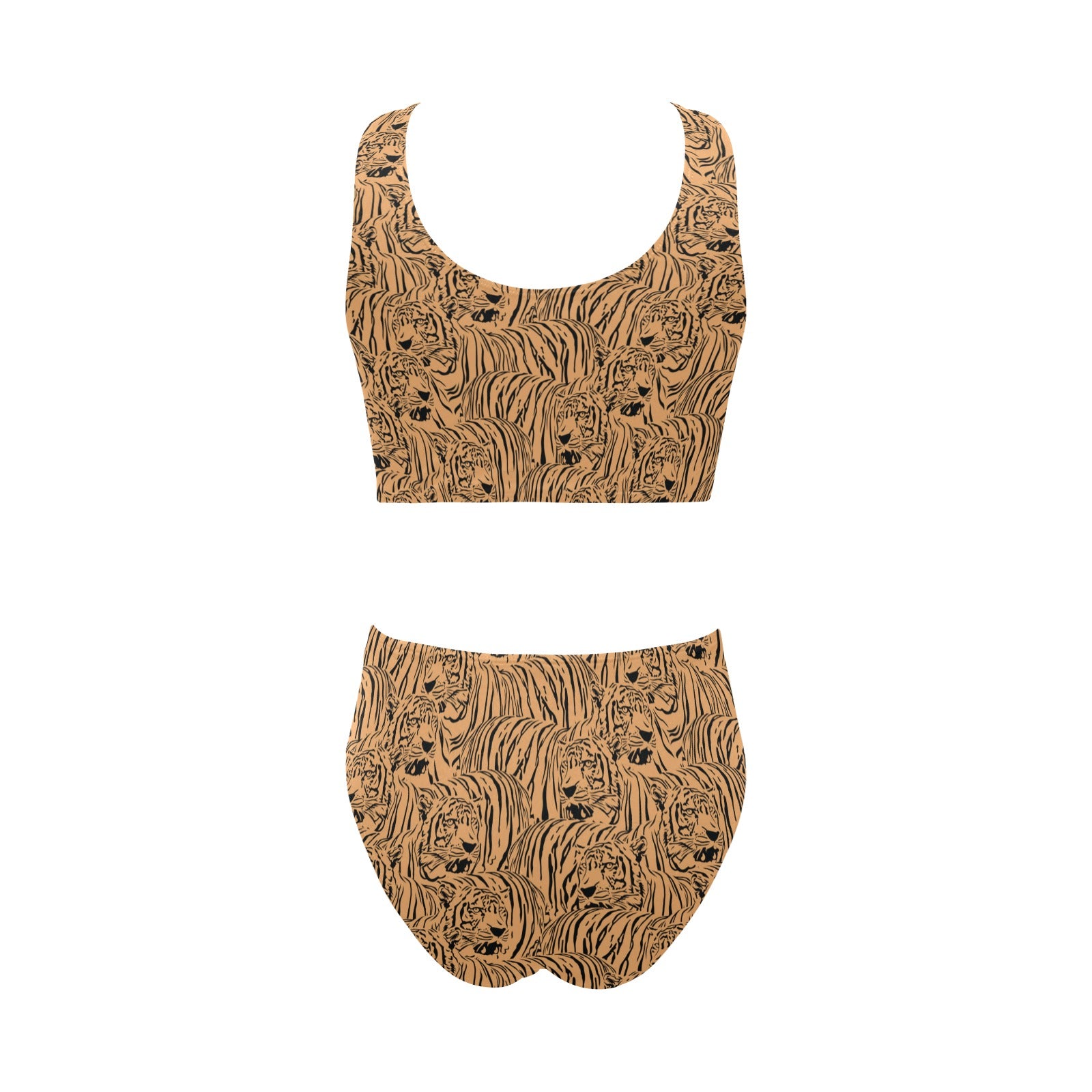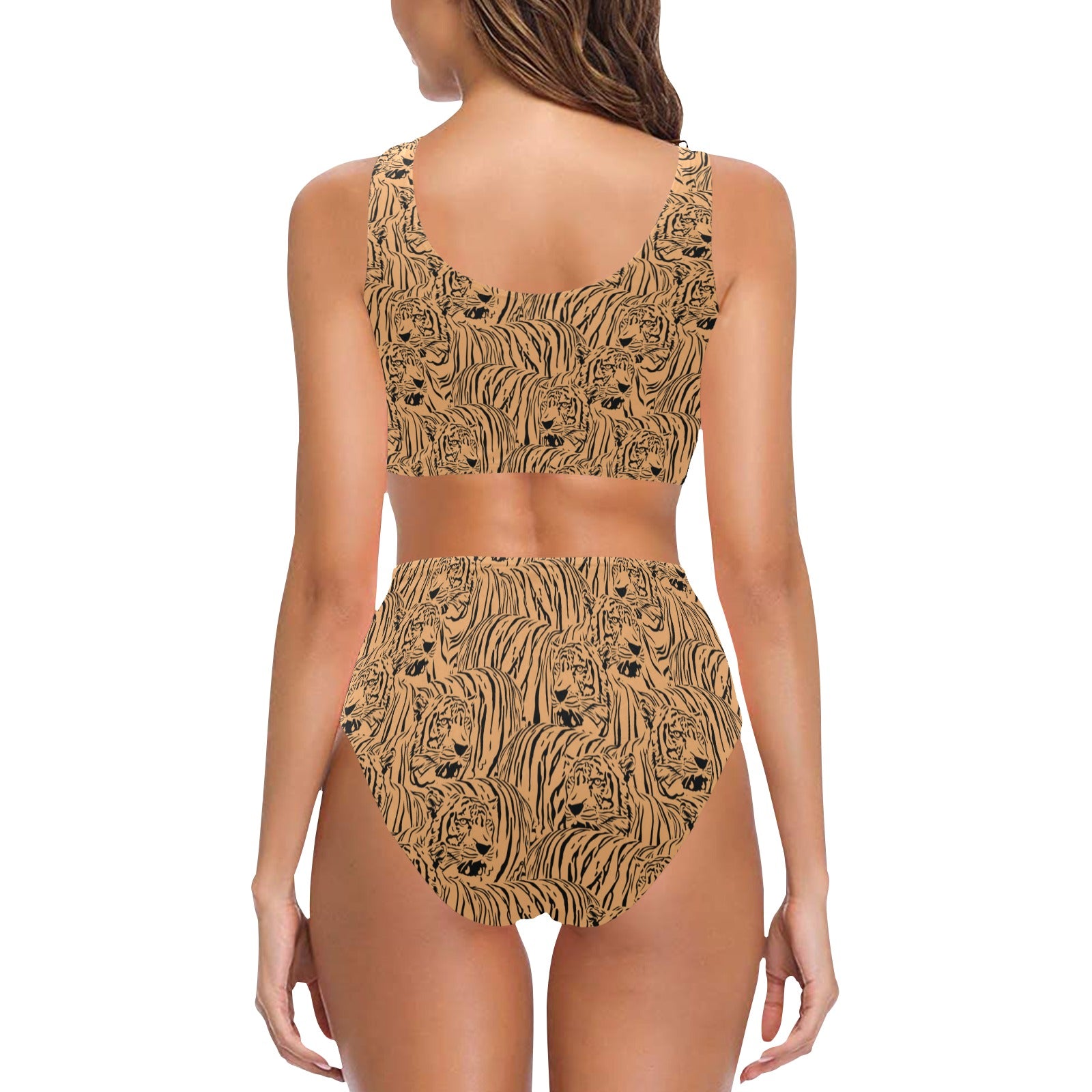 Bengal tigers pattern Chest Bowknot High Waisted Bikini Swimsuit
