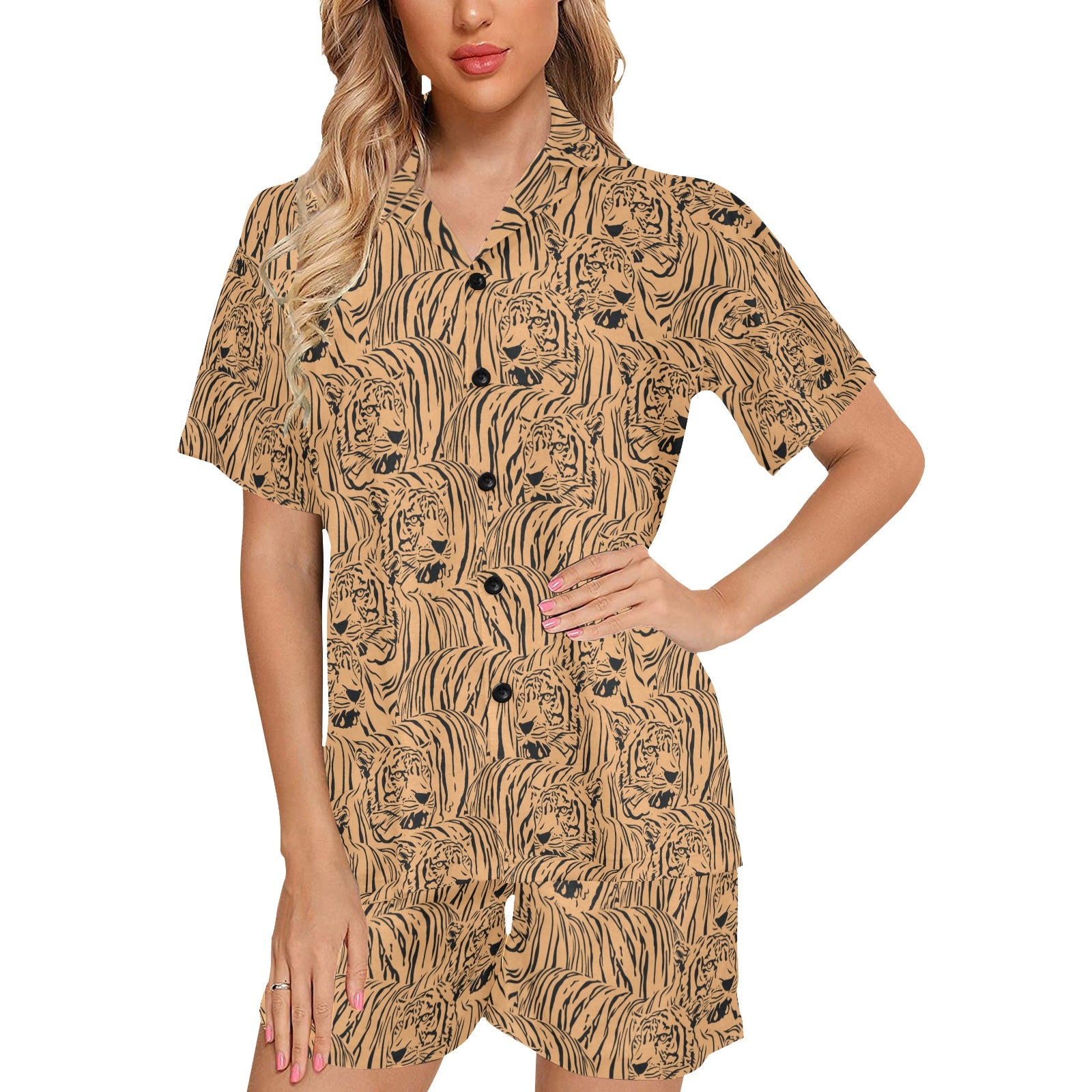 Bengal tigers pattern Women's V-Neck Short Pajama Set