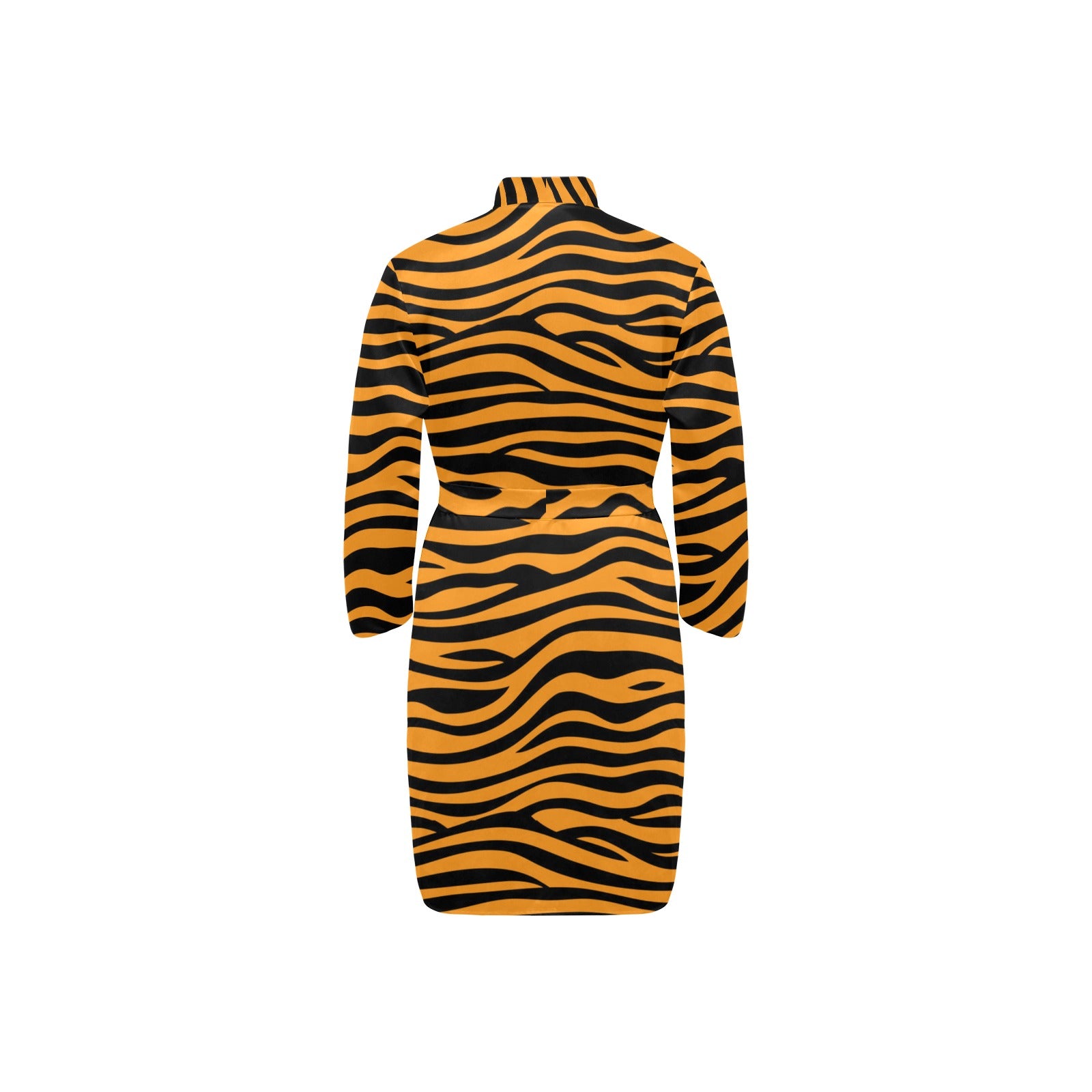 Bengal tigers skin print pattern background Men's Long Sleeve Belted Night Robe