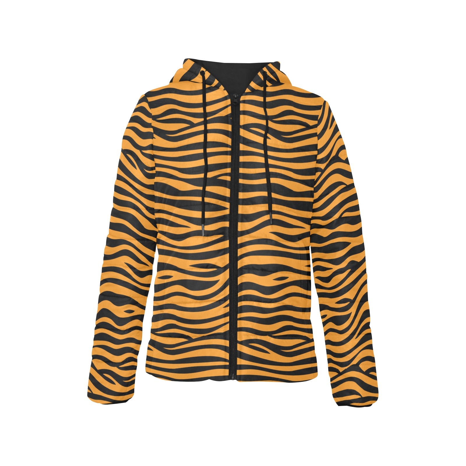 Bengal tigers skin print pattern background Women's Padded Hooded Jacket