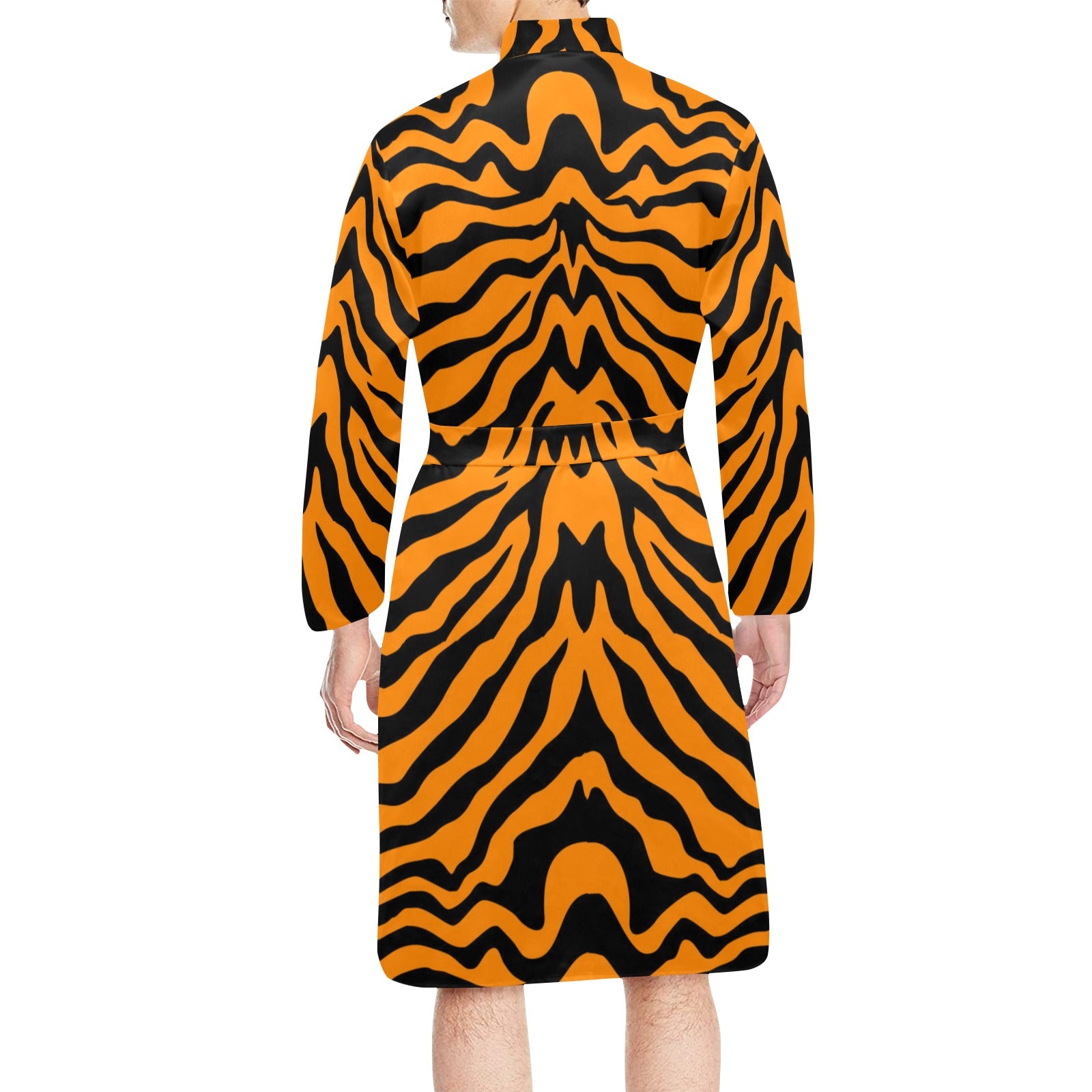 Bengal tigers skin print pattern Men's Long Sleeve Belted Night Robe