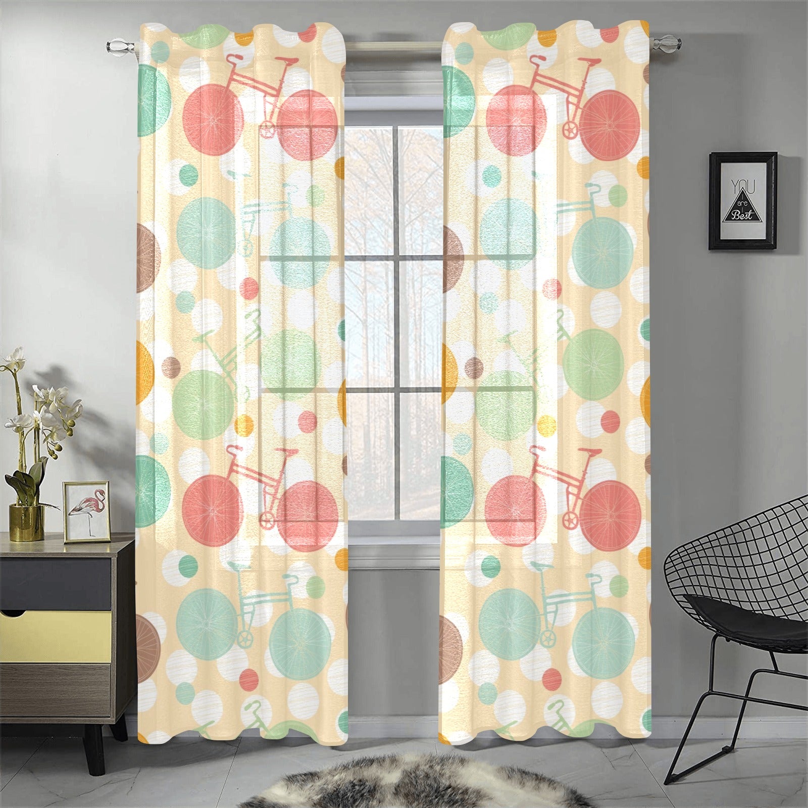 Bicycle Pattern Print Design 01 Gauze Curtain