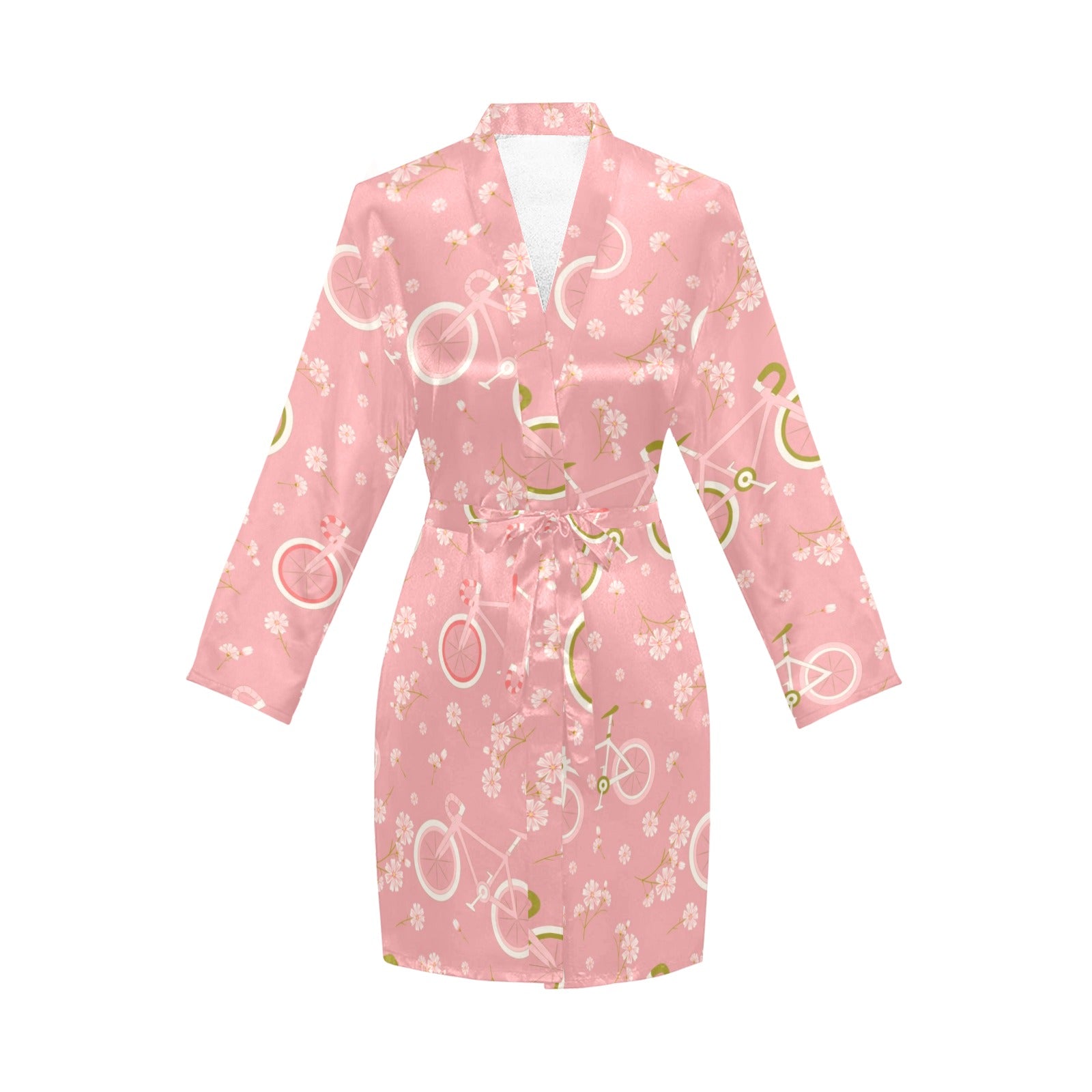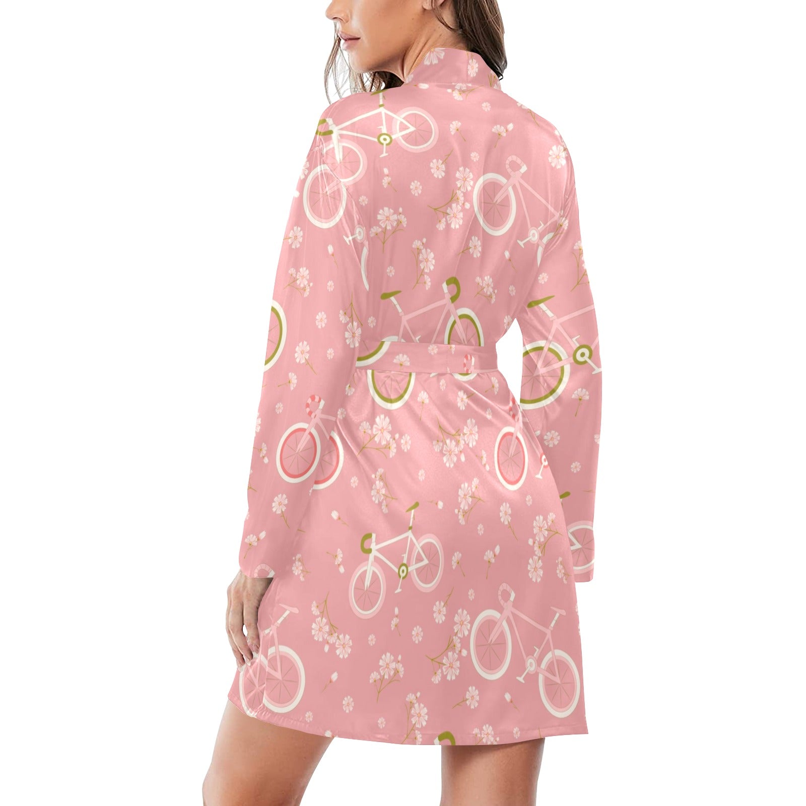 Bicycle Pattern Print Design 02 Women's Long Sleeve Belted Night Robe