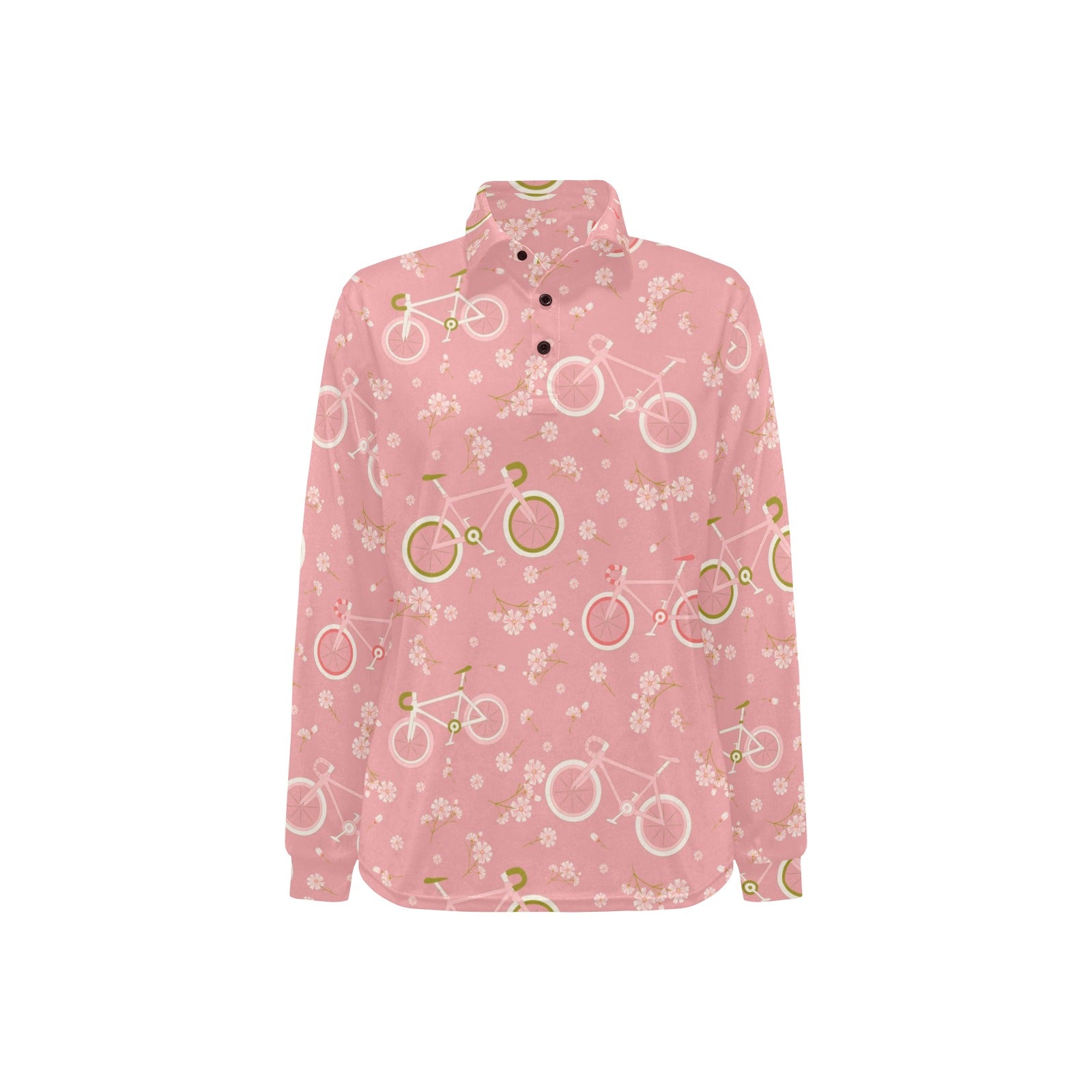 Bicycle Pattern Print Design 02 Women's Long Sleeve Polo Shirt
