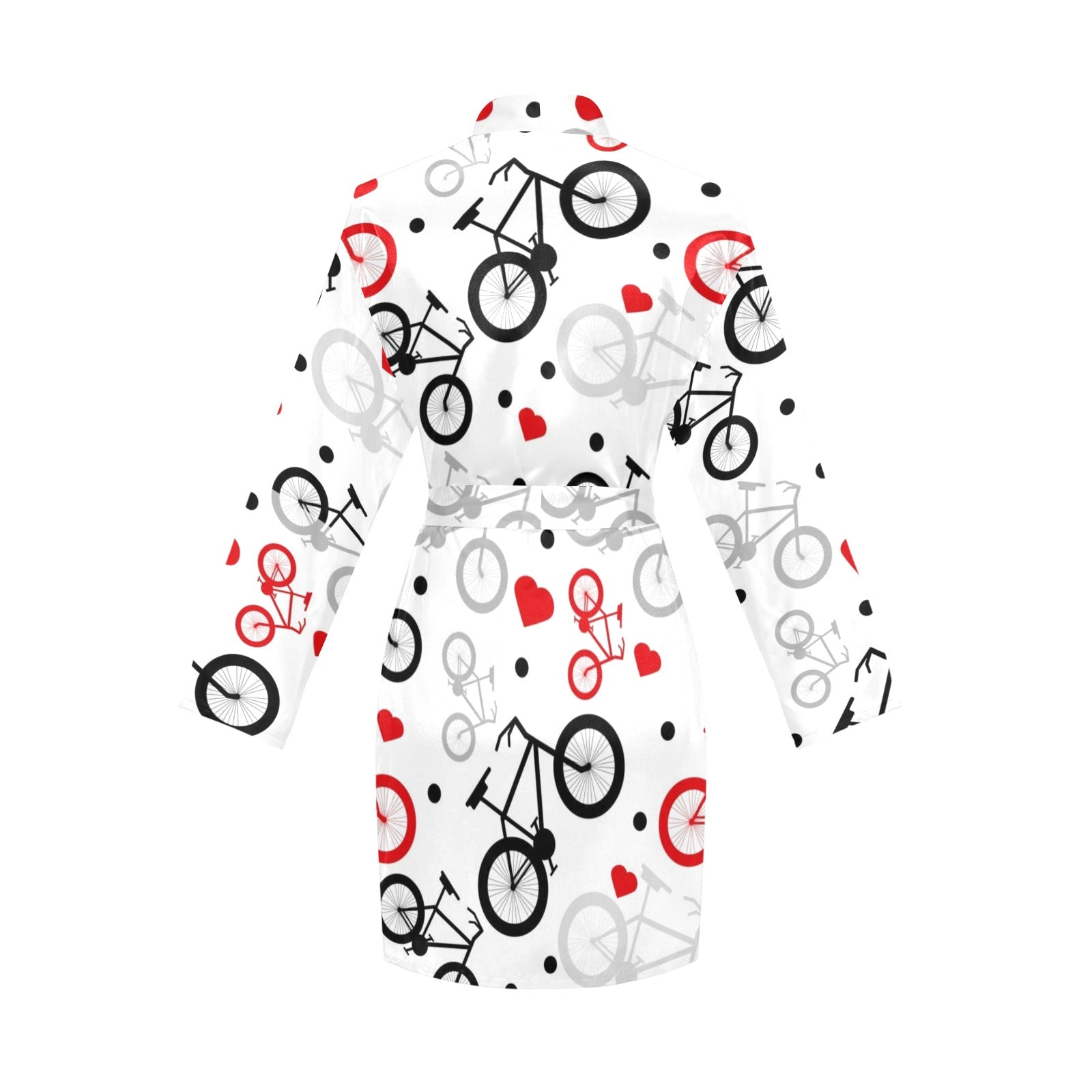 Bicycle Pattern Print Design 04 Women's Long Sleeve Belted Night Robe