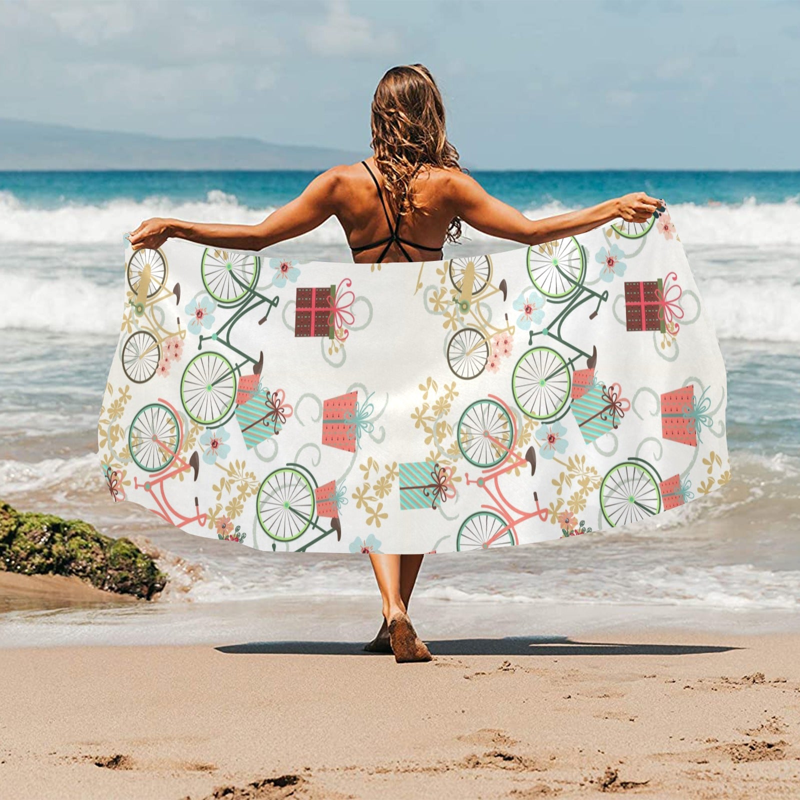 Bicycle Pattern Print Design 05 Beach Towel