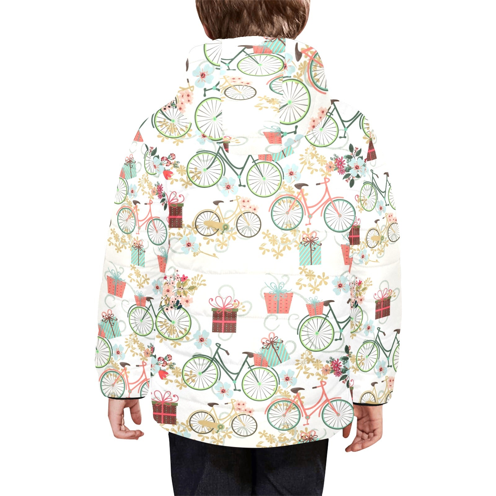 Bicycle Pattern Print Design 05 Kids' Boys' Girls' Padded Hooded Jacket