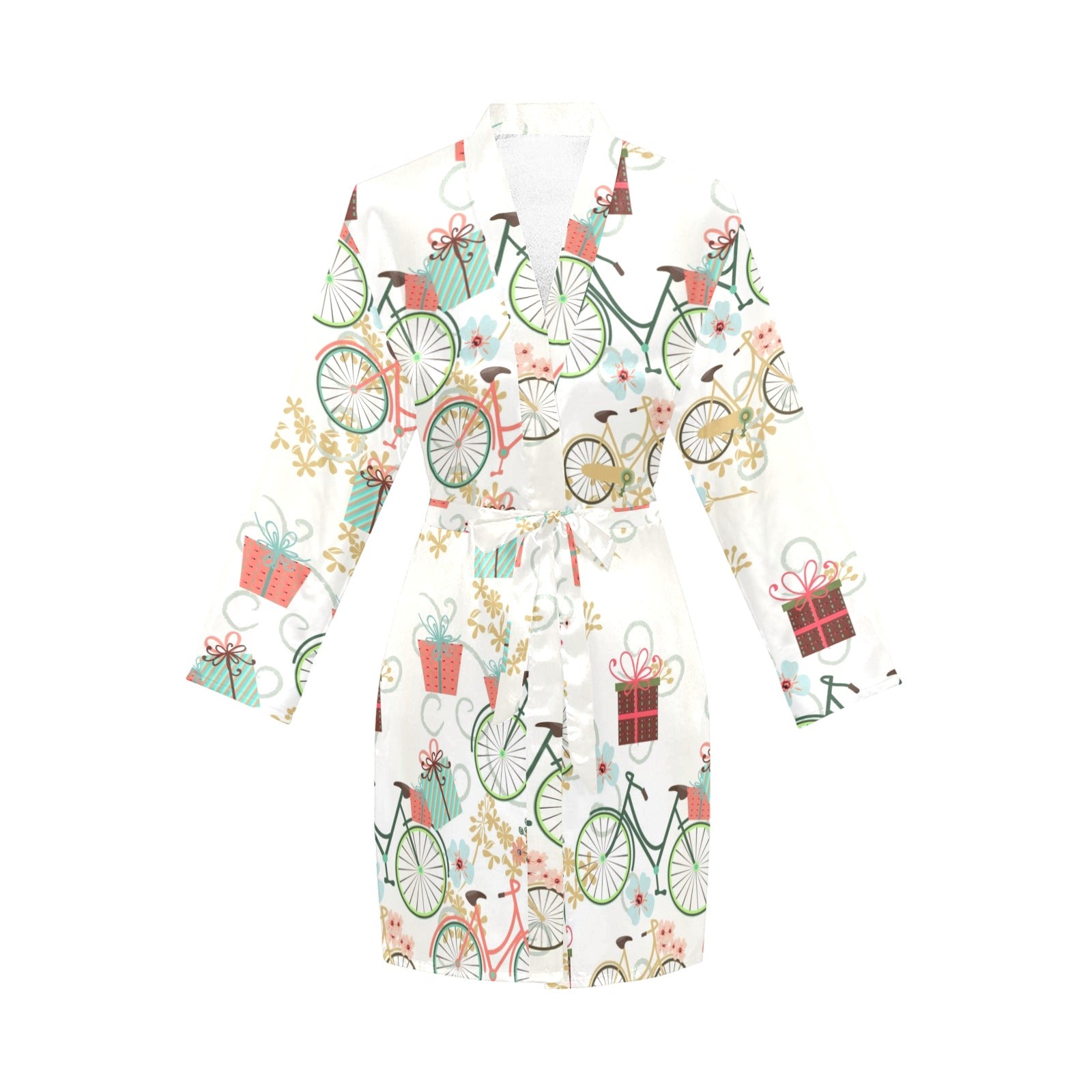 Bicycle Pattern Print Design 05 Women's Long Sleeve Belted Night Robe