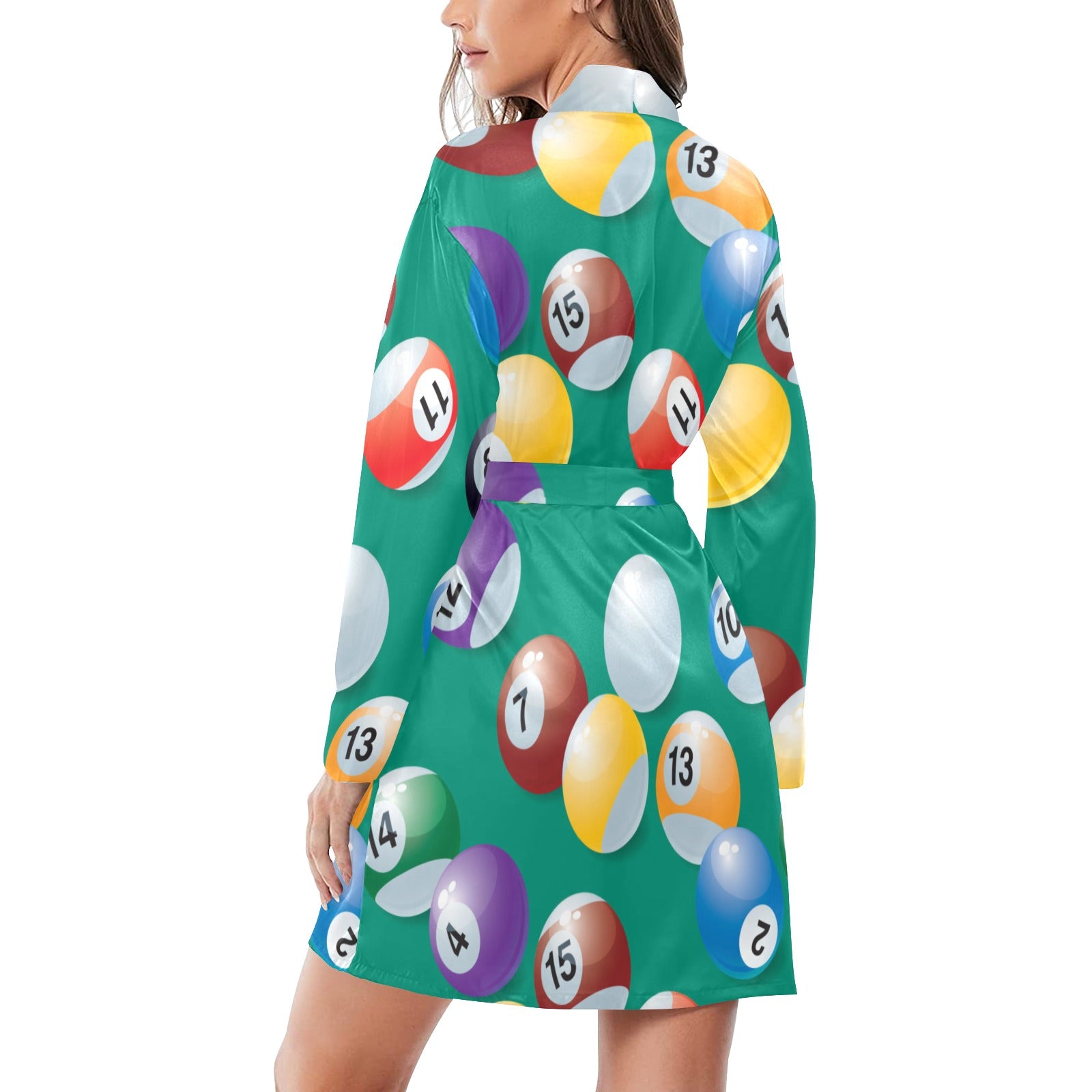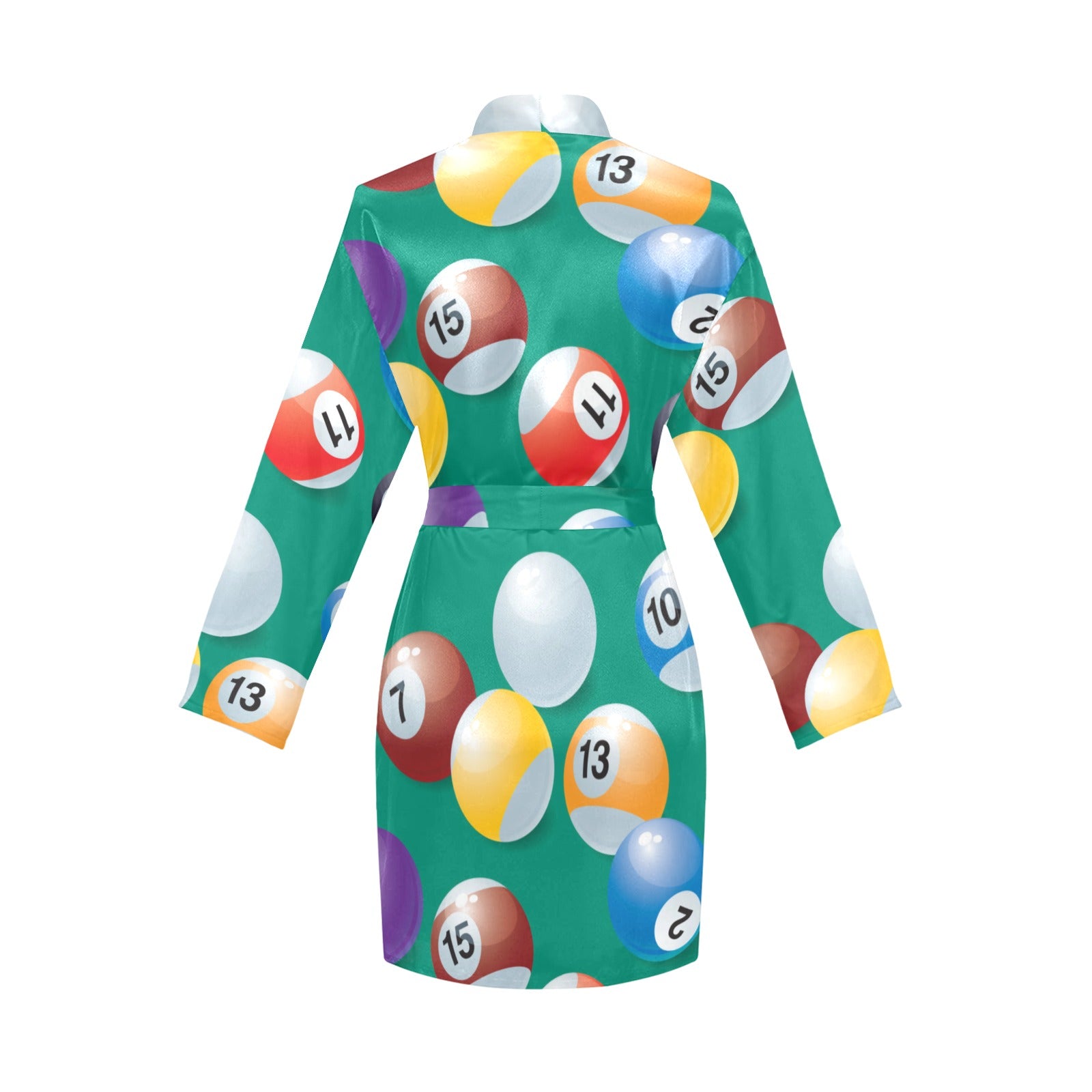 Billiard Ball Pattern Print Design 01 Women's Long Sleeve Belted Night Robe