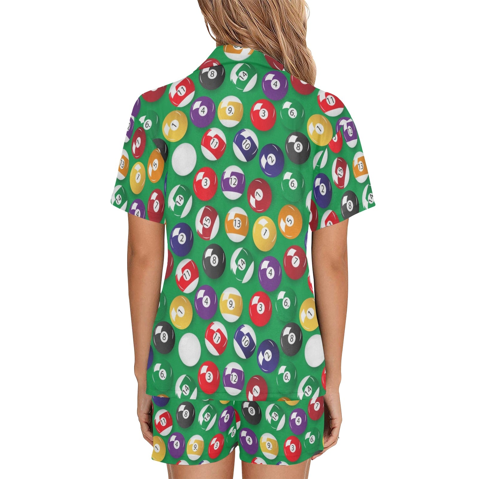 Billiard Ball Pattern Print Design 02 Women's V-Neck Short Pajama Set