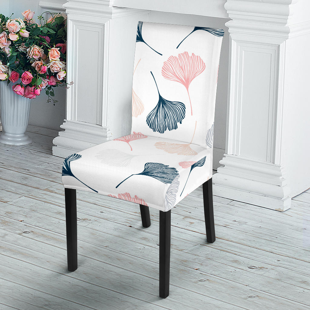 Black Gray Cream Coral Ginkgo Leaves Pattern Dining Chair Slipcover