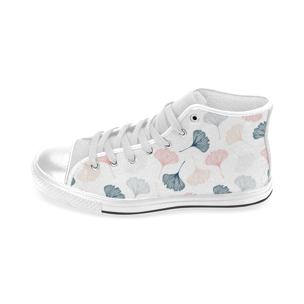 Black Gray Cream coral ginkgo leaves pattern Men's High Top Canvas Shoes White