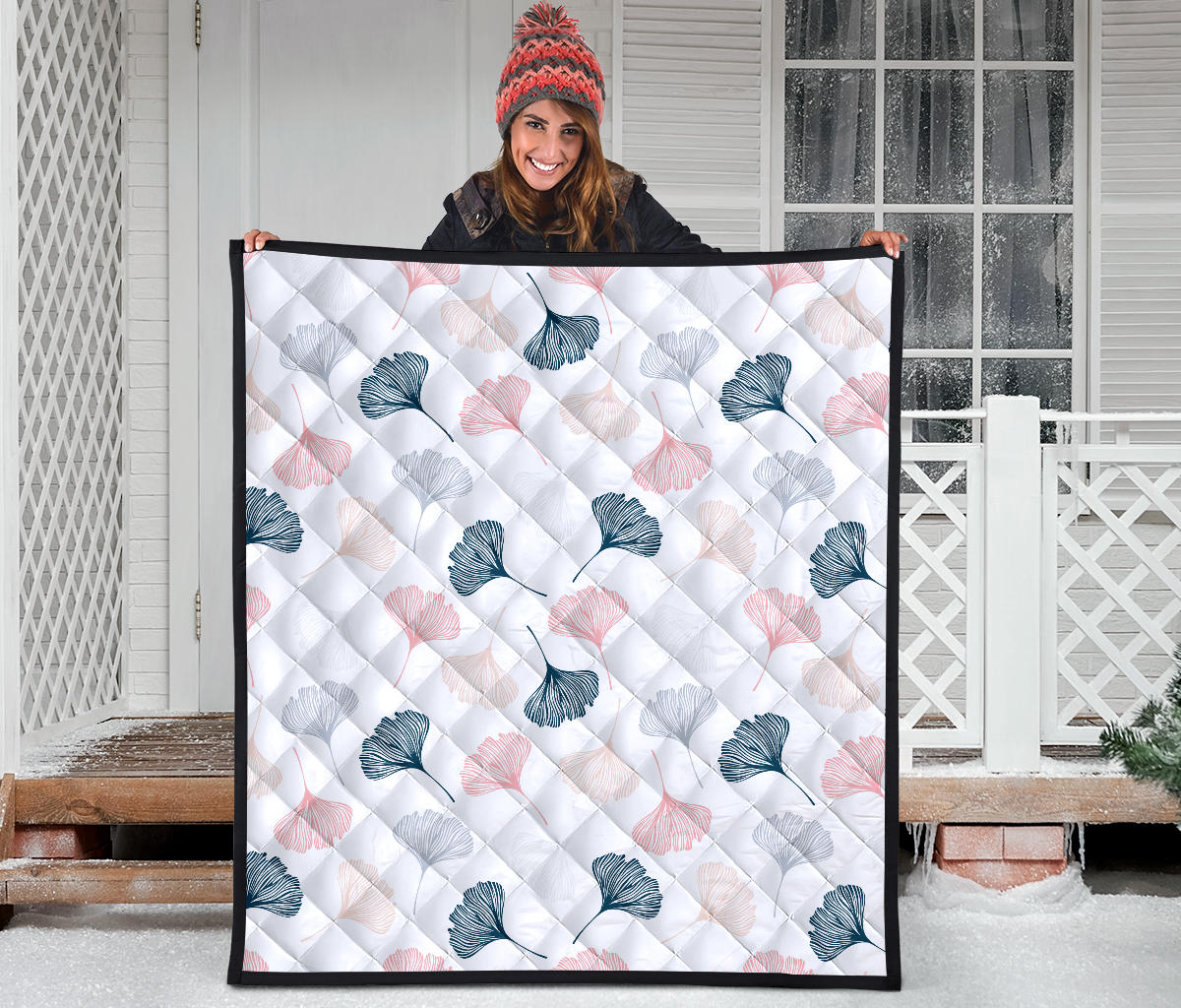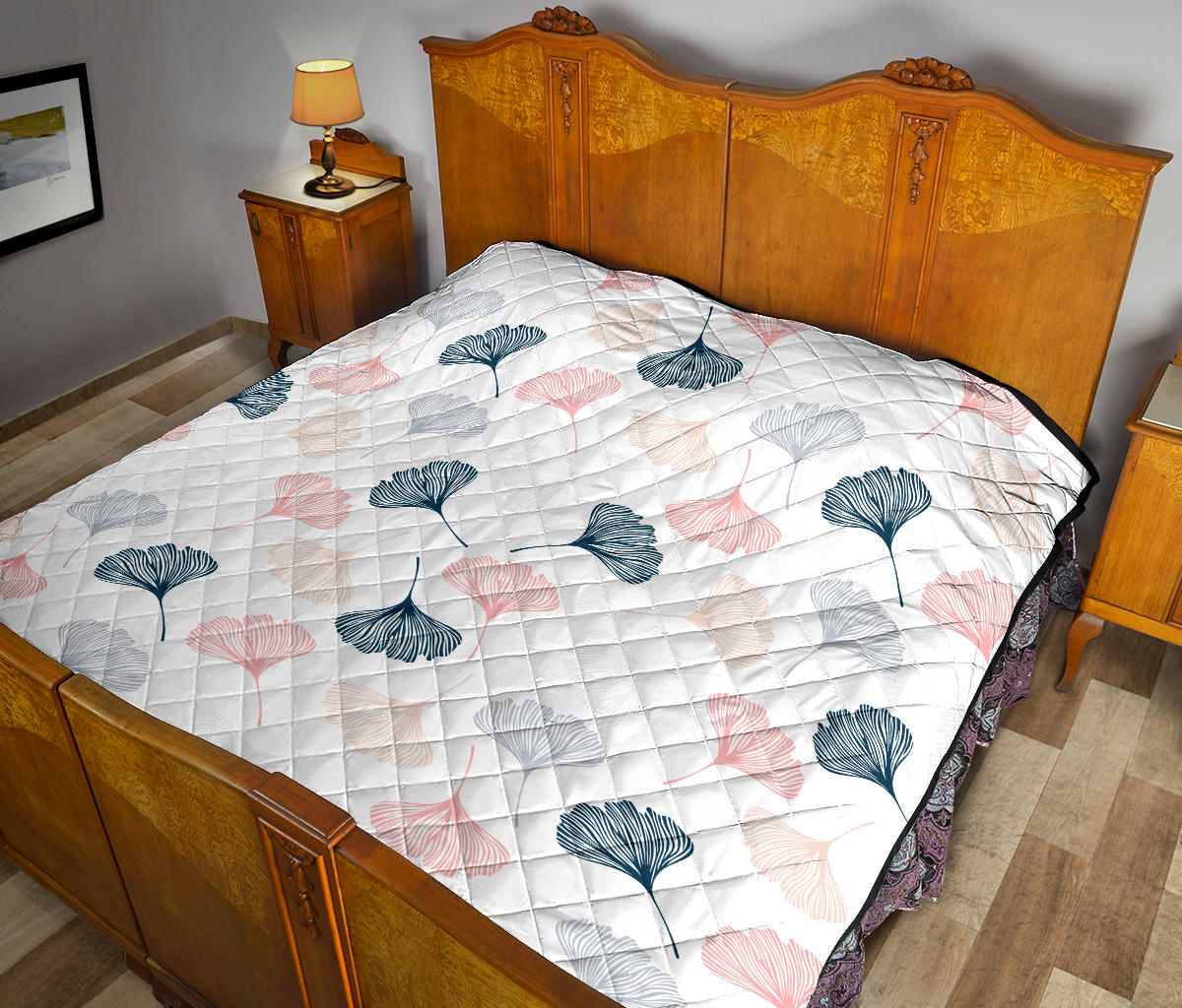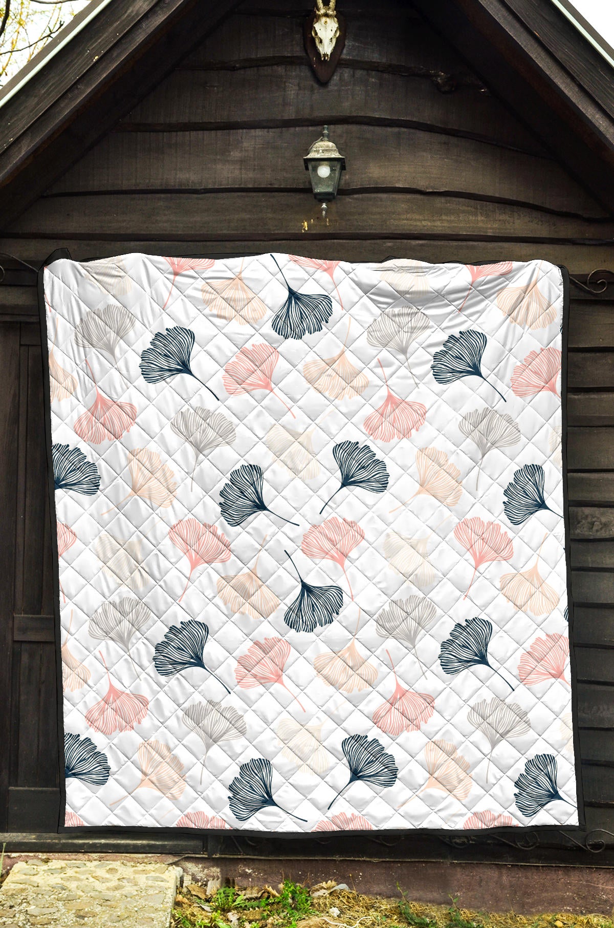 Black Gray Cream Coral Ginkgo Leaves Pattern Premium Quilt is a uniqued design and limited item. It made to order, hand printed, and sewn with love in our factory.